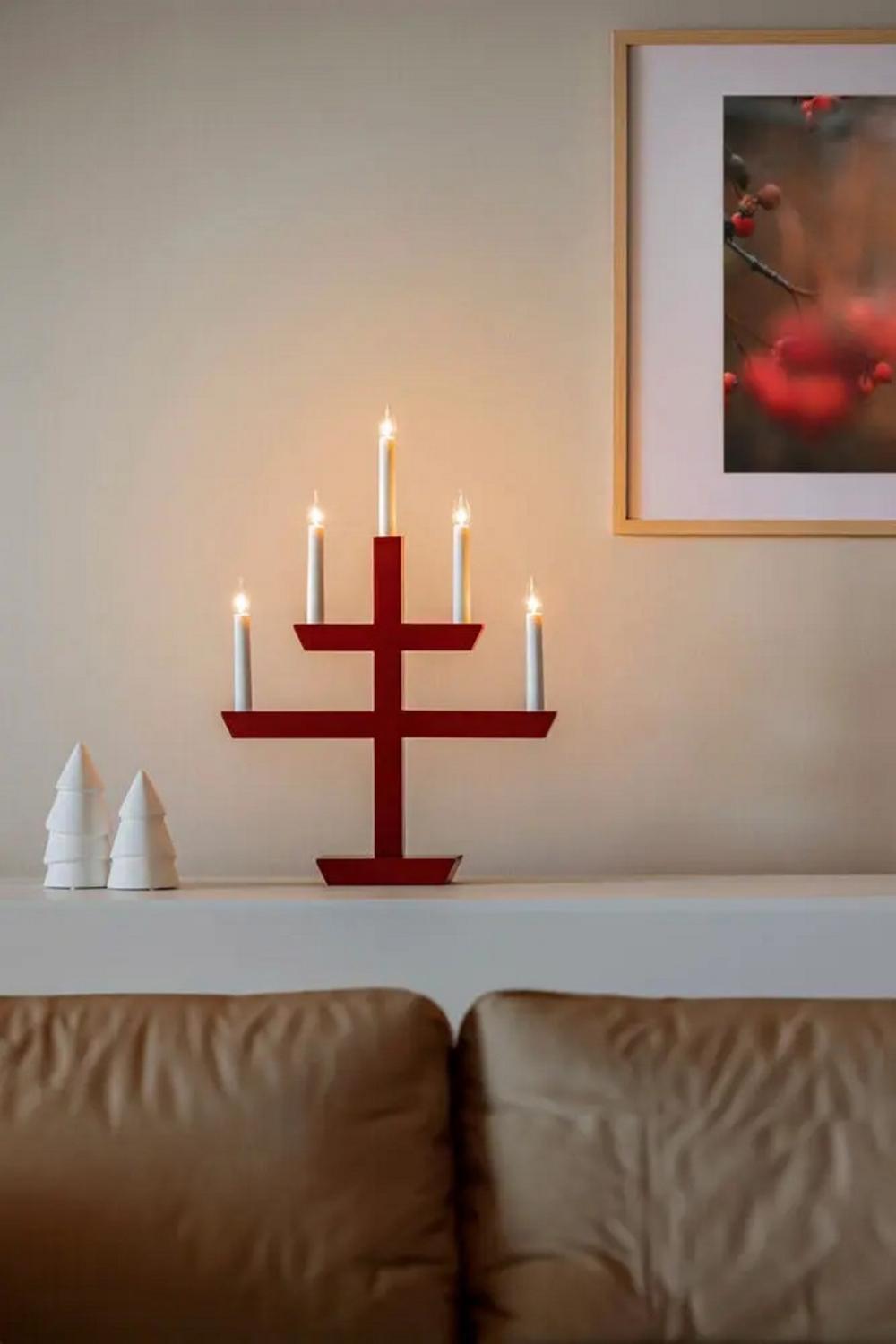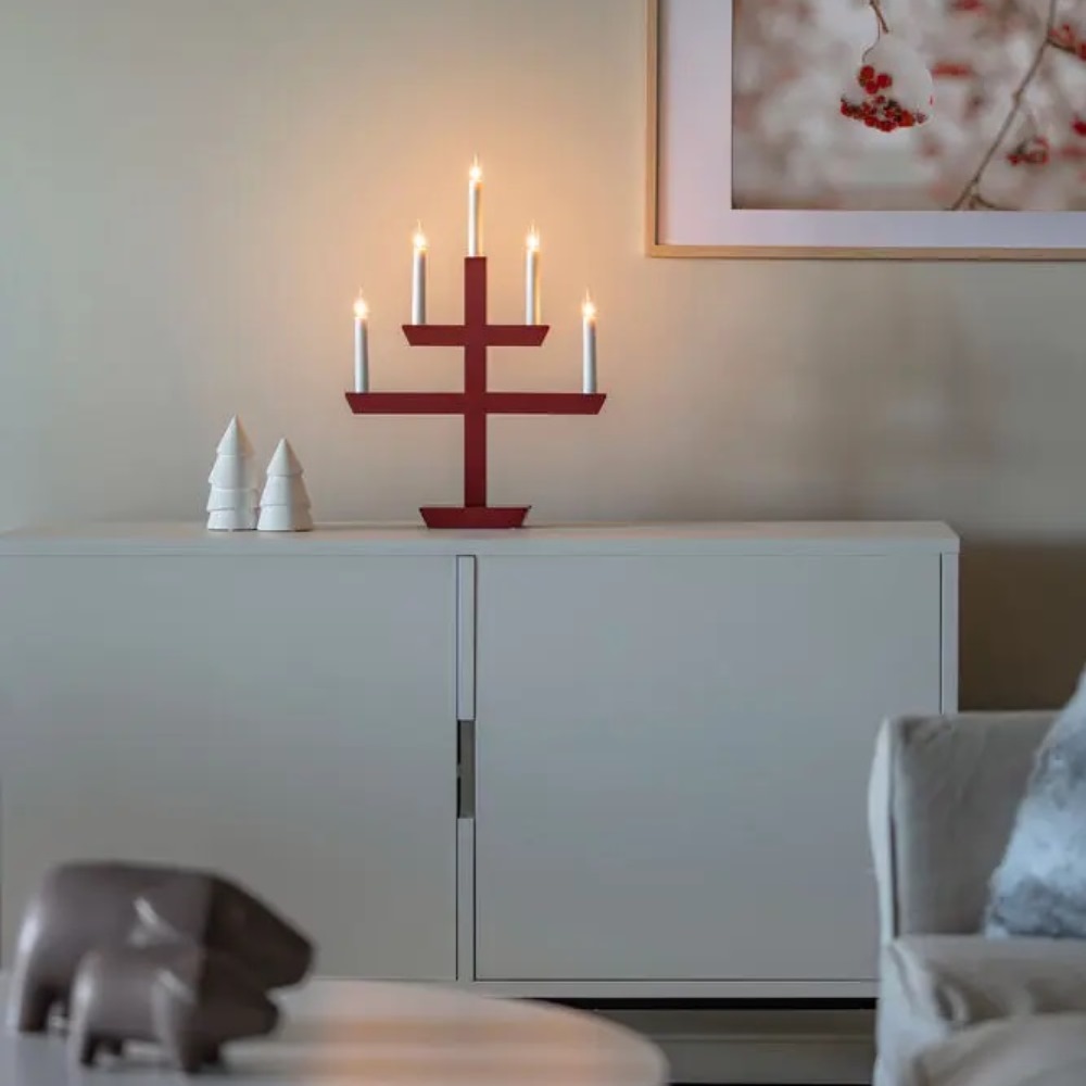 Adventsljusstake i trä, röd från Konstsmide med 5 ljus och klassisk design. Ljusstaken sprider ett varmt och inbjudande sken i vintermörkret och blir en tidlös detalj som passar lika bra i fönstret som på bordet. En riktig julfavorit som skapar mys och hemtrevnad år efter år.