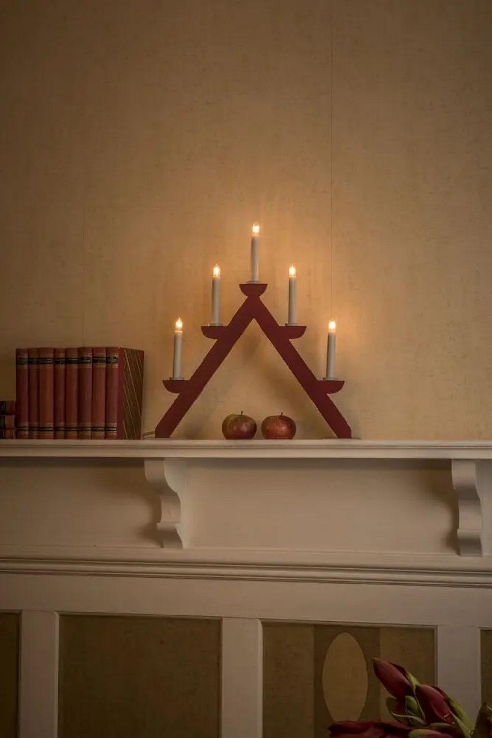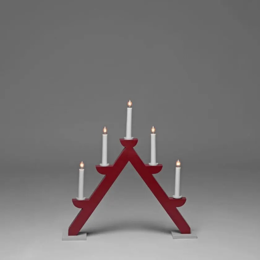 Adventsljusstake Trä Röd/Grå 5L 44cm Konstsmide