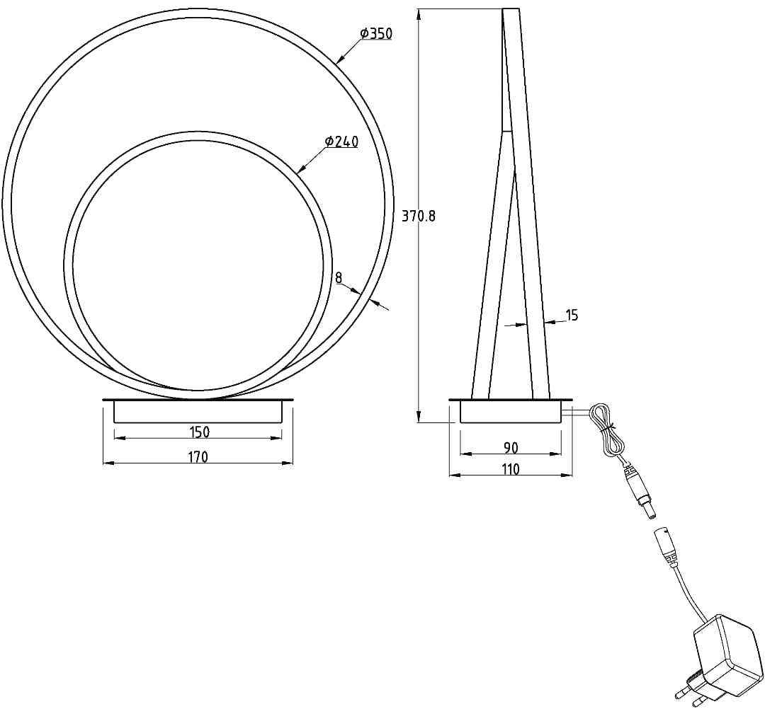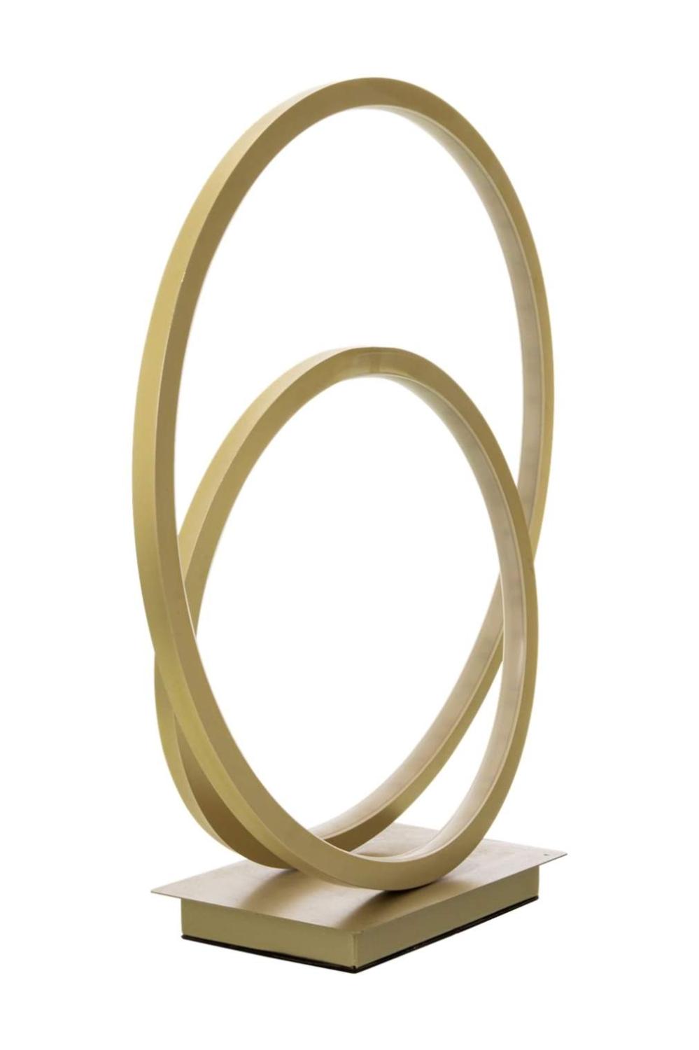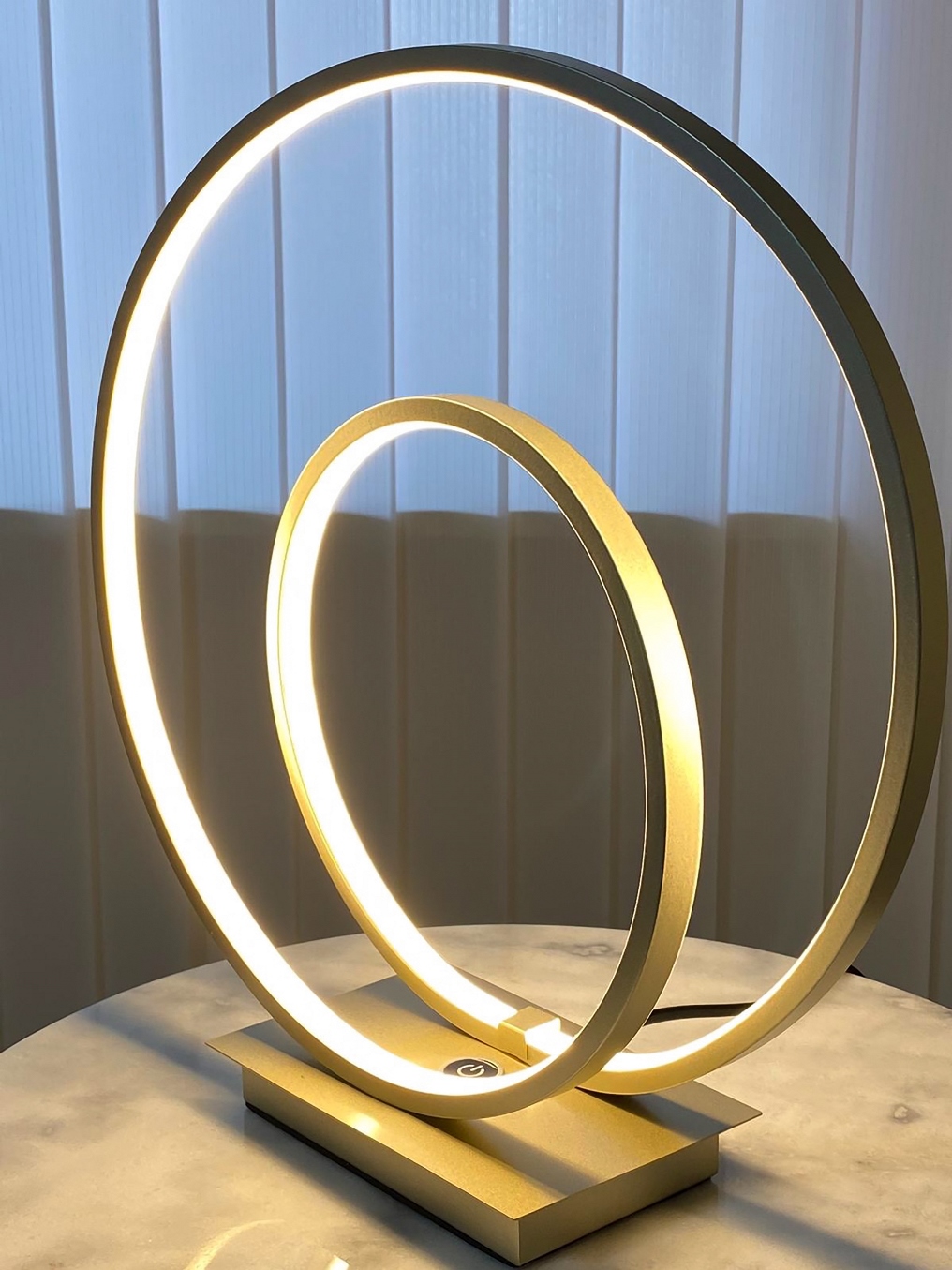 Bordslampa Loop från varumärket Aneta Lighting har en spännande och modern design i champagnefärgad metall. Den integrerade LED-ljuskällan på 14W avger ett varmt vitt ljus med bra färgåtergivning och är perfekt för en fin stämningsbelysning. Med 3-stegs dimmer på lampfoten justerar du enkelt ljusstyrkan. Lampan ansluts med plug-in kontakt och blir ett stilfullt inslag i rummet. Ljuskälla ingår.
