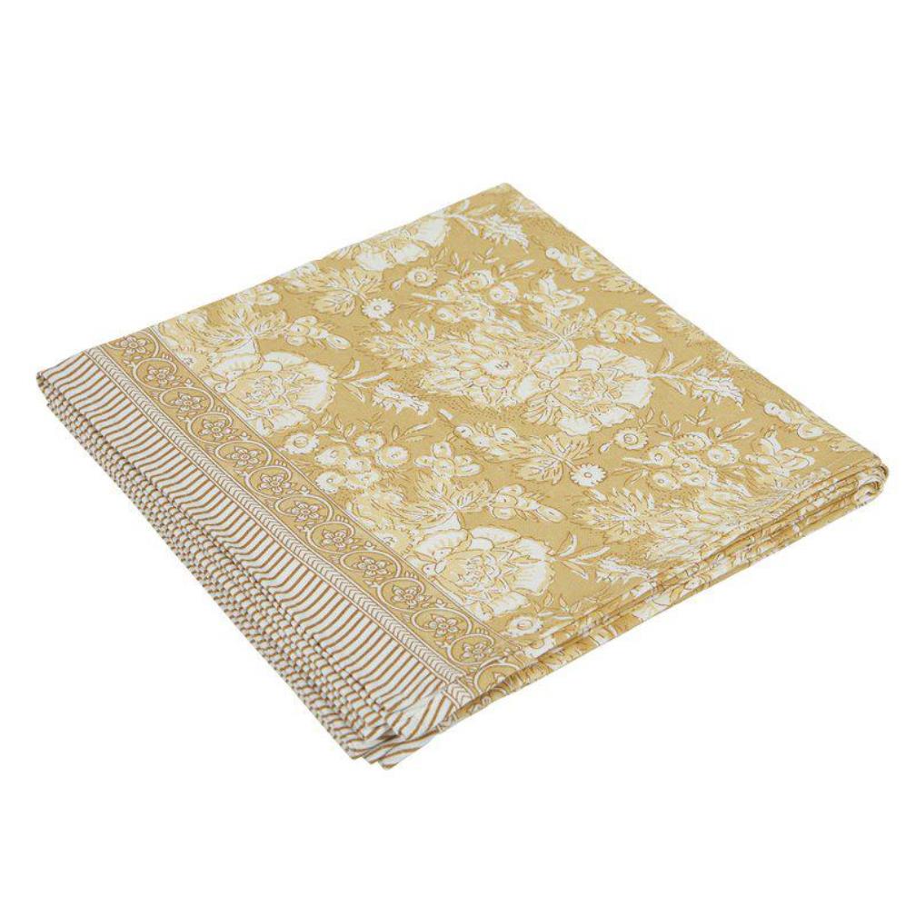 Textilvaxduk Sonia från Fondaco med ett vackert gult mönster som drar blickarna till sig. Den akrylatbehandlade, vattenavvisande ytan gör den praktisk och enkel att torka av, samtidigt som den behåller en mjuk och textilliknande känsla. Ett utmärkt val för en elegant och stilfull dukning. Storlek: 140x250 cm.