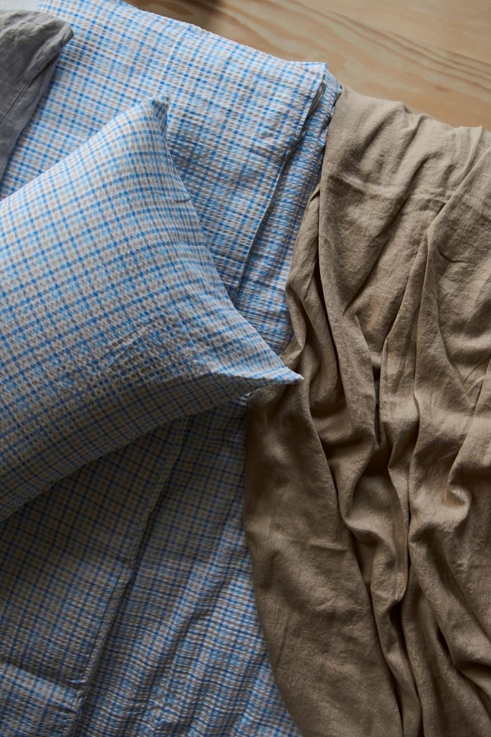Påslakanset Dalskog från Kosta Linnewäfveri är tillverkat i krispig bäckebölja (bomullsseersucker) som håller sig svalt och fräscht natt efter natt. Den strukturerade ytan ger ett naturligt avslappnat uttryck och gör att sängen ser lika fin ut obäddad som nybäddad.