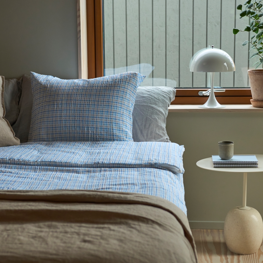 Smårutigt och svalt bäddset i krispig kvalitet som ger en luftig känsla. Klassiskt mönster som skapar en harmonisk och somrig stil i sovrummet.
