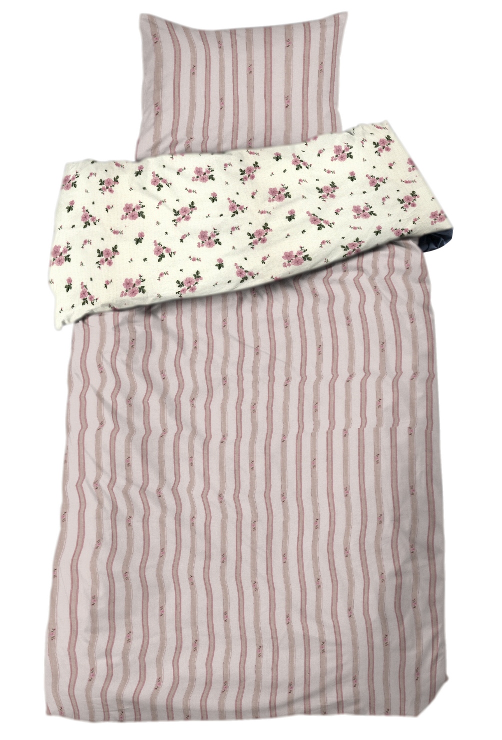 Påslakanset Stina från Redlunds är ett 2-delars set i klassisk bäckebölja. Bäddsetet har två olika mönster, ena sidan har rosa blommor på en vit botten och andra sidan är randig med små blommiga detaljer som matchar. Bäckebölja upplevs svalare än andra typer av bäddset, vilket ger en härlig känsla och ett snyggt utseende tack vare sin struktur. Setet levereras i en påse i samma kvalitet som bäddsetet. Setet har en trådtäthet 144 TC.