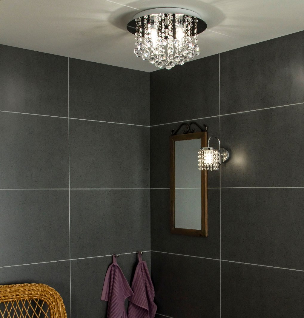 Vägglampa Teresa från Aneta Lighting har en vacker design som passar perfekt i badrum med IP-klass 44. Den har en kromad metallstomme som ger ett modernt intryck med dekorativa prismor i klar akryl som skapar ett vackert ljusspel. Prismorna tillför en lyxig känsla och reflekterar ljuset på ett effektfullt sätt. Vägglampan monteras på väggen med skruvar och fast strömanslutning. Till Teresa rekommenderas en ljuskälla med en G9 sockel max 33W. Ljuskälla ingår ej.