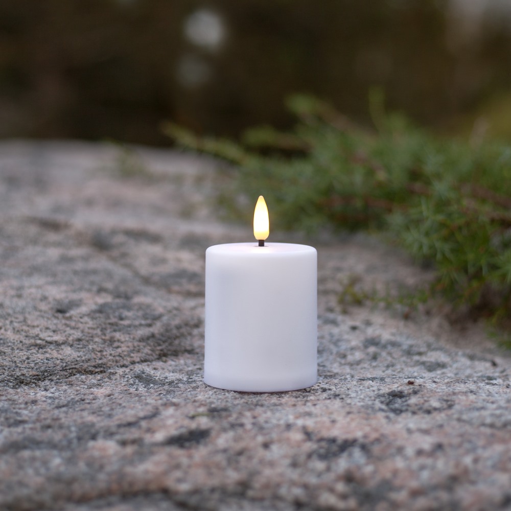 Blockljus LED Flamme Paula från Star Trading är ett litet naturtroget vitt batteriljus som passar lika fint på egen hand som inuti lyktor eller tillsammans med andra ljus i en dekorativ grupp. Flamme Paula är anpassad för både utomhus- och inomhusbruk. Den realistiska lågan ger ett varmt och behagligt sken som skapar en mysig och ombonad atmosfär.