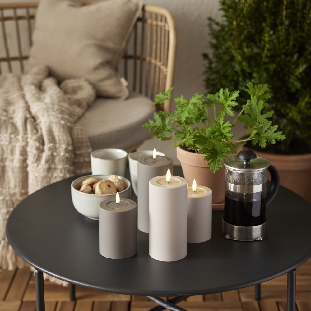 Blockljus LED Flamme Soft från Star Trading är ett naturtroget mullvadsfärgat batteriljus med den verklighetstrogna lågan Flamme som ger ett varmt och stämningsfullt sken. Ljuset har en sammetslen yta i plast samt en blank nedsänkning under lågan som efterliknar flytande vax, vilket ger ett vackert och naturtroget intryck.