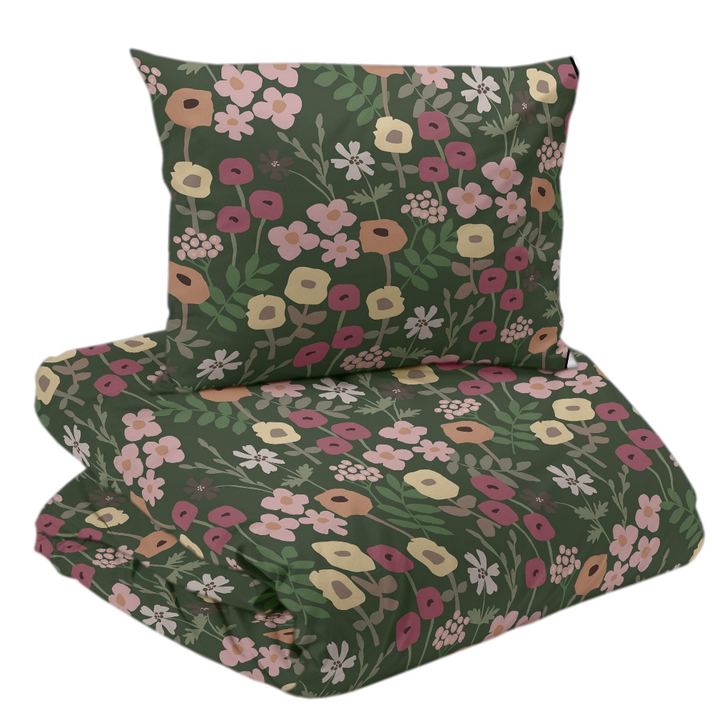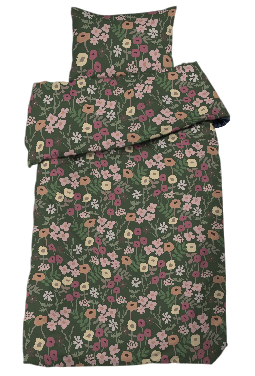Blommigt Påslakanset Cleo Mörkgrön 150x210cm Redlunds