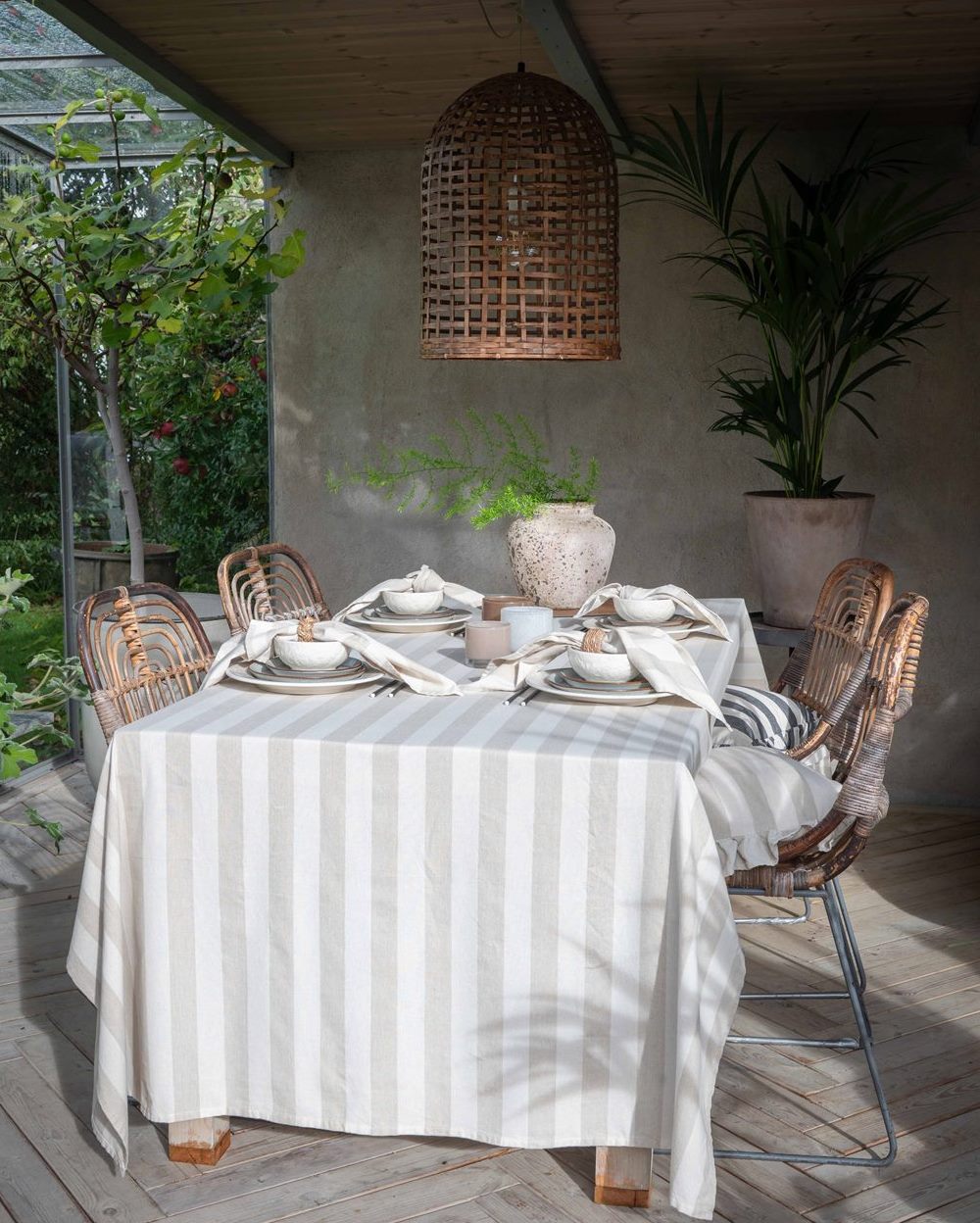 Bordsduk Amalia Randig Linnebeige 140x300cm Fondaco