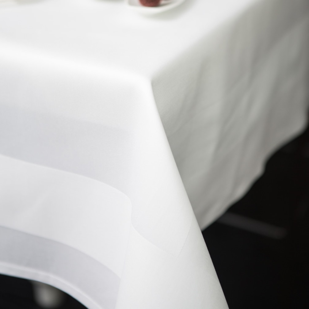 Bordsduk Delight från Fritz Magnus är en klassisk kvadratisk duk i vitt med en tidlös och elegant design. Den stilrena vävda satinranden ger dukningen ett exklusivt uttryck som passar lika bra till vardagsmiddagen som till festen.