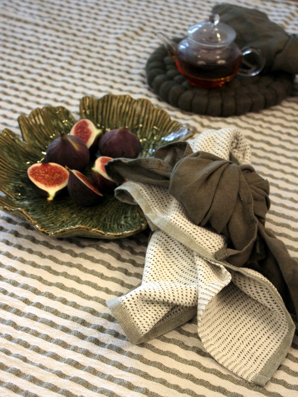 Bordsduk Randig Agata Mossgrön 145x280cm Svanefors