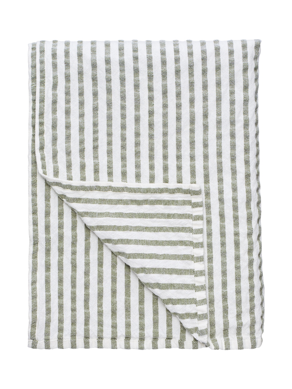 Bordsduk Agata mossgrön från Svanefors är tillverkad i mjukt bomullstyg och har en elegant garnfärgad, randig design som ger en klassisk och tidlös känsla. Den tvättade effekten ger duken en lätt, naturlig look som passar lika bra till vardags som till fest. En stilfull detalj som ger bordet värme och charm i varje dukning. Storlek: 145x280 cm.