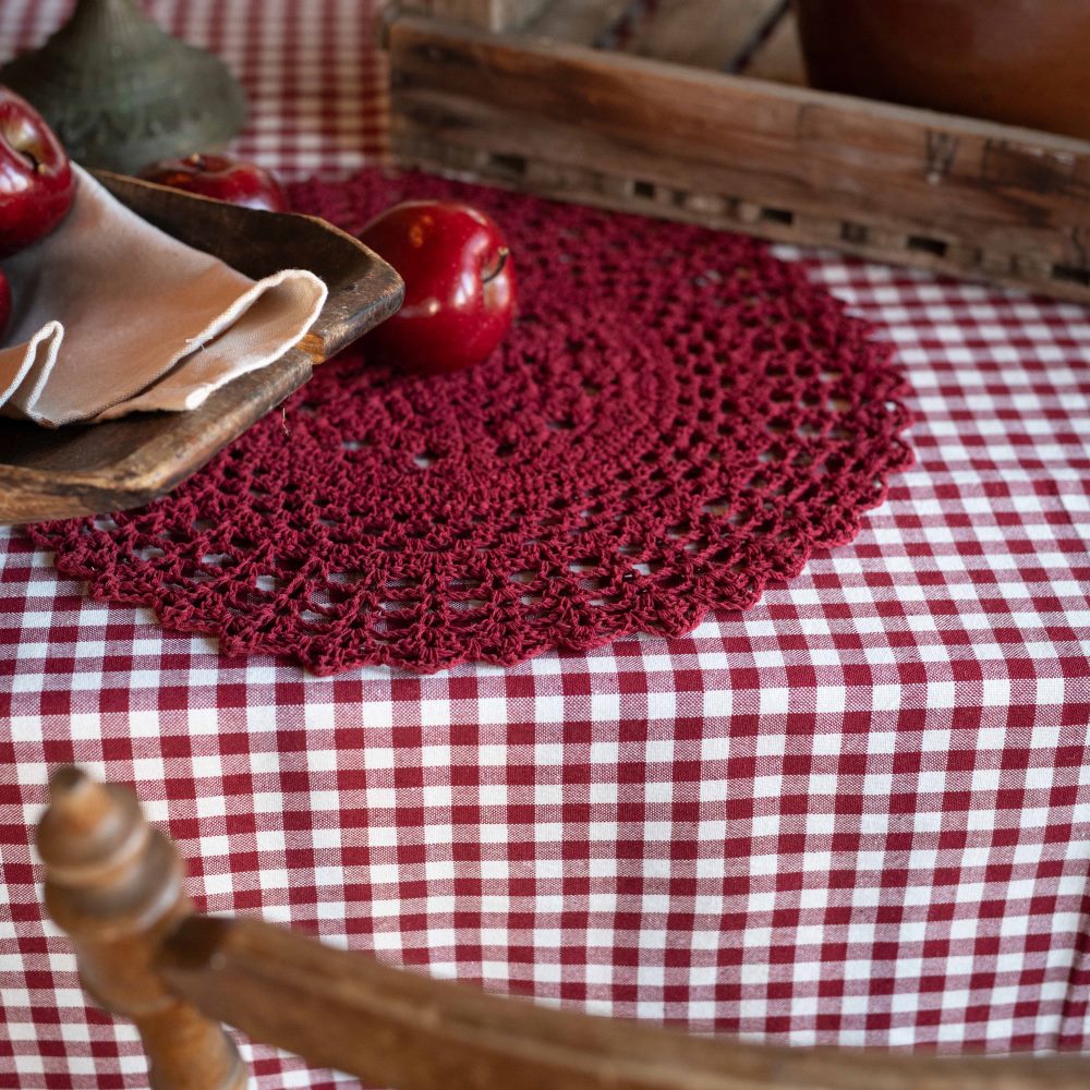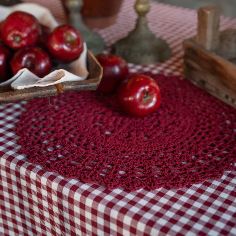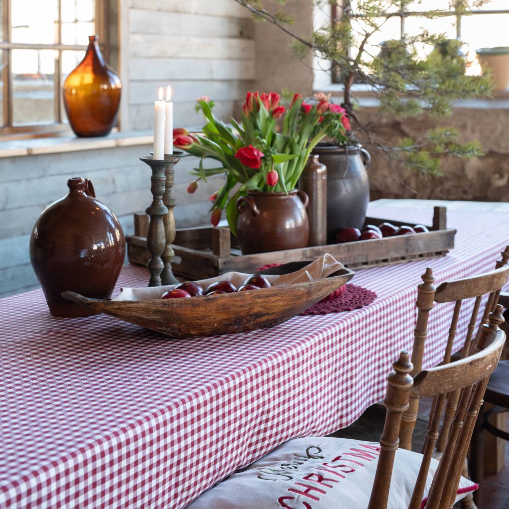 Bordsduk Freja från Fondaco med klassiskt smårutigt rött mönster och tidlös design. De 1 cm stora rutorna bildar ett harmoniskt och välbalanserat mönster som ger en hemtrevlig känsla. Duken är tillverkad av återvunnen bomull och blir en stilren detalj som passar lika bra till vardag som till fest. Storlek: 140x300 cm.