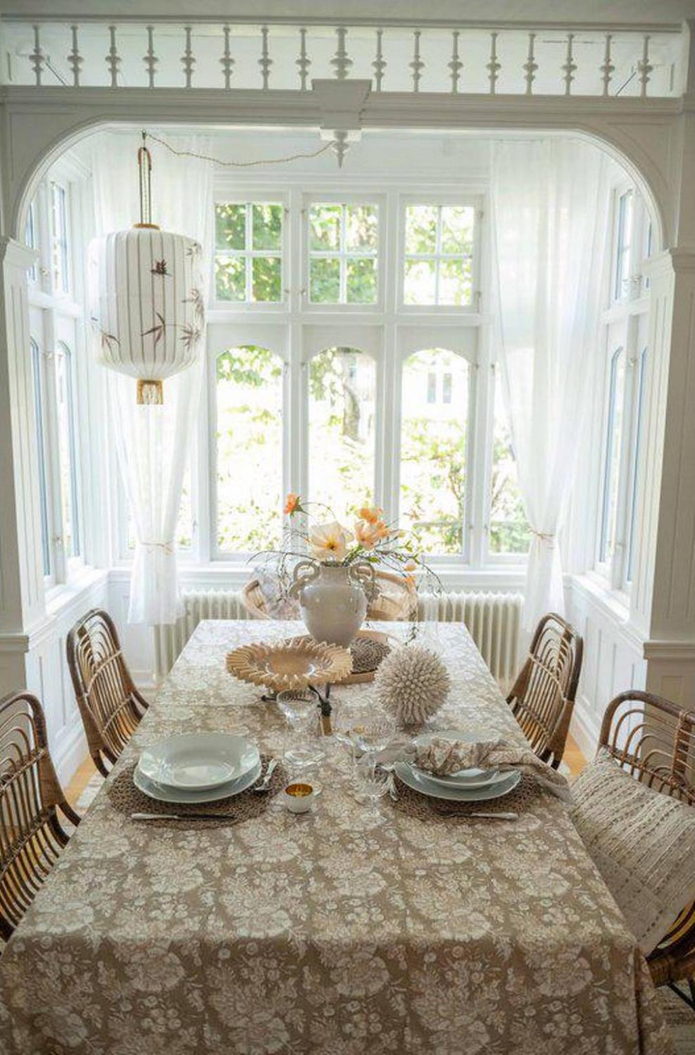 Bordsduk Sonia Blommig Linnebeige 145x300cm Fondaco