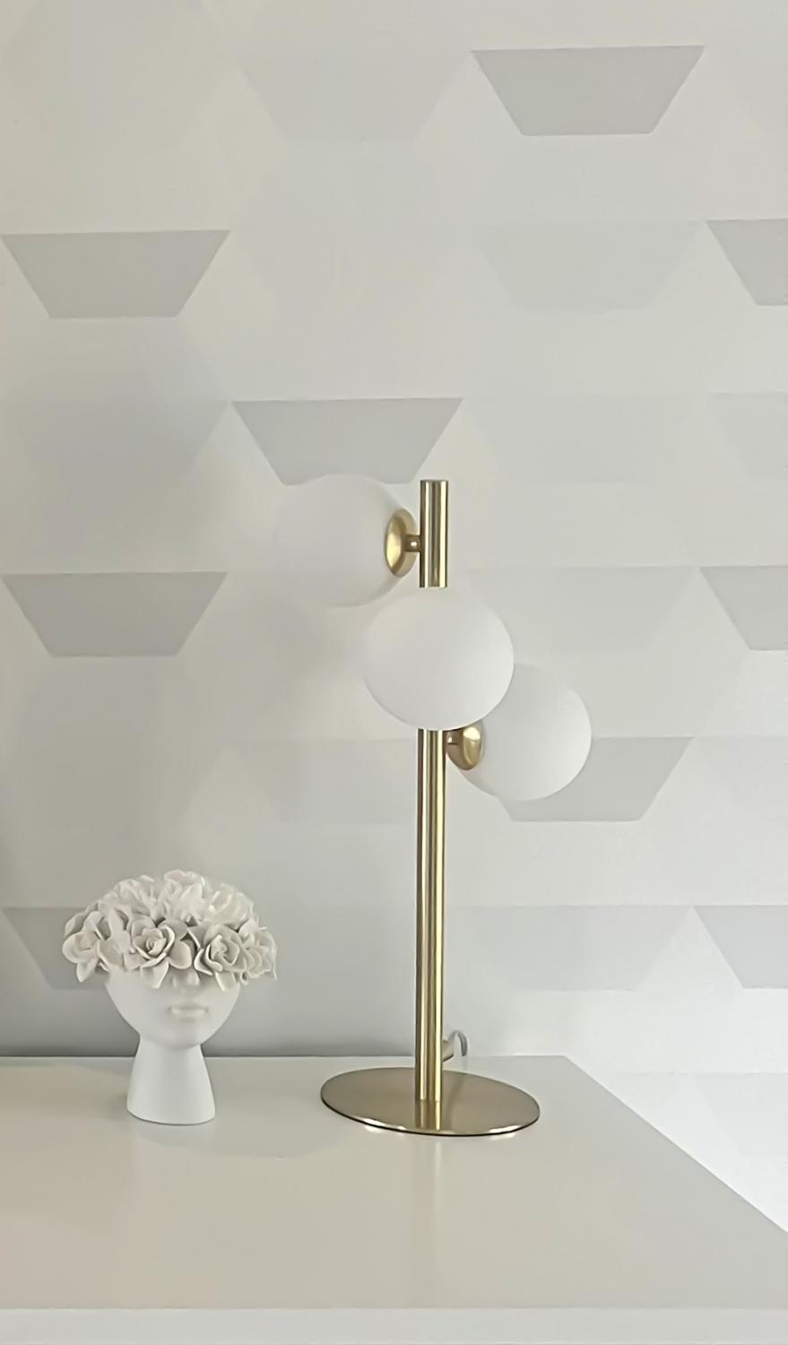 Bordslampa Molekyl från Aneta Lighting har en stilren design med lampfot i matt mässing och tre opalvita glaskupor. Perfekt för både fönster och sidebord då den skapar ett mjukt och stämningsfullt ljus. Till lampan rekommenderas en ljuskälla med G9 sockel, max 3x25W. Den levereras med en transparent sladd med strömbrytare på sladden. Ljuskällor ingår ej.
