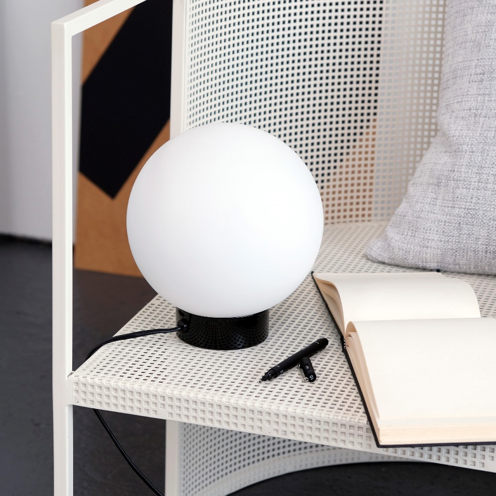 Bordslampa Barcelona från Dyberg-Larsen med rund och minimalistisk design som kan placeras var som helst i hemmet. Bordslampan är tillverkad av en kombination av svart metall och opalglas. Den sprider ett mjukt och behagligt ljus i rummet och sprider härlig stämning i rummet. Till Barcelona rekommenderas en ljuskälla med E27 sockel, max 40W. Den levereras med en 1,5 meter svart plastsladd. Ljuskälla ingår ej.