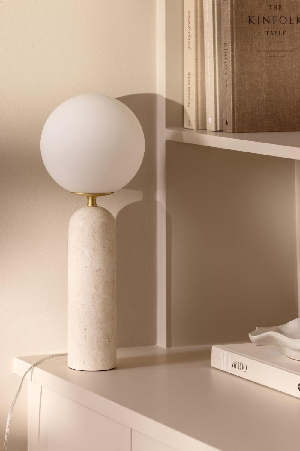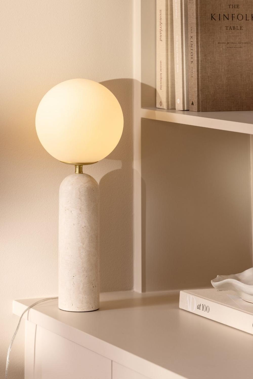 Bordslampa Torrano från Globen Lighting kombinerar tidlös design med lyxiga material. Tillverkad i solid beige travertinmarmor blir den en exklusiv inredningsdetalj som ger rummet karaktär. De mjukt rundade formerna står i vacker kontrast till stenens naturliga tyngd och struktur, vilket gör att lampan drar blickarna till sig.