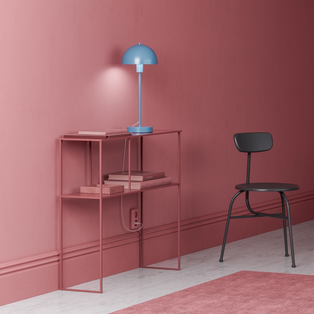 Bordslampa Vienda från Herstal i blå metall med elegant glaskupa. Lampan har en tidlös och stilren design med en mjukt kupolformad skärm som sprider ett behagligt ljus i rummet. Tack vare sin nätta form är den enkel att placera och är lika fin på ett sidobord i vardagsrummet som på nattduksbordet bredvid sängen.