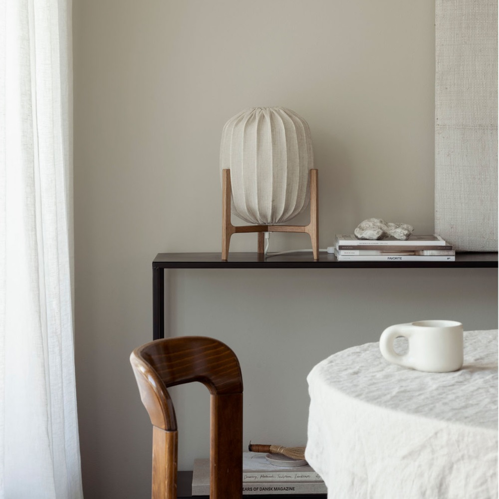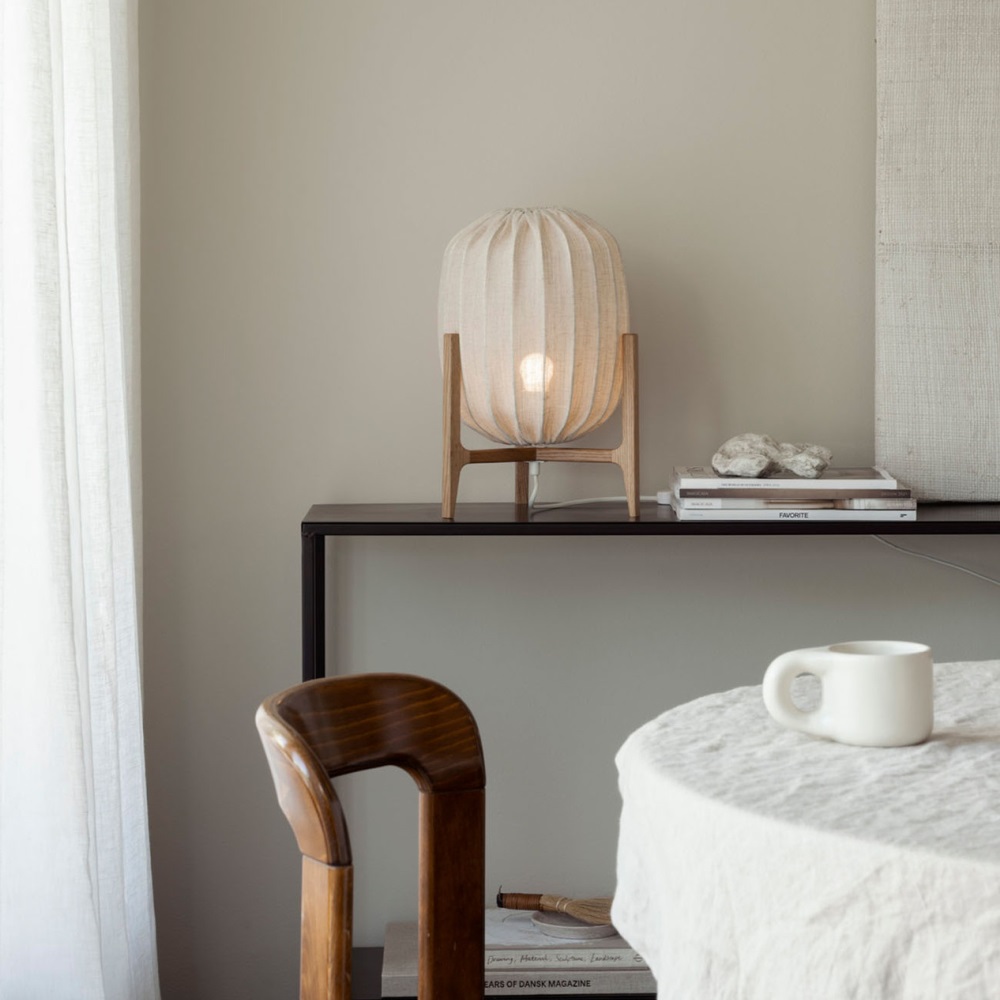 Bordslampa Prisma från Watt & Veke har en tidlös design som skapar en känsla av avslappnad lyx. Den eleganta lampfoten i oljad ek i kombination med den mjuka och naturfärgade linneskärmen blir en fantastiskt mysig inredningsdetalj och en elegant ljuspunkt.