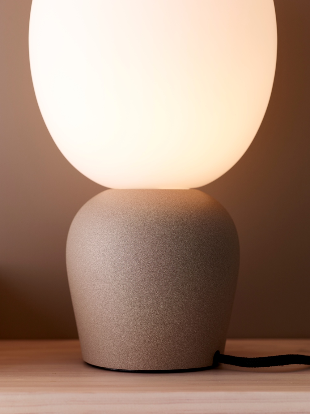 Bordslampa Buddy från Belid har en dekorativ och stilren form som gör den enkel att placera i olika miljöer. Den kupformade skärmen i opalglas sprider ett mjukt och behagligt ljus som skapar en varm och inbjudande atmosfär. Lampans beige stomme harmonierar vackert med glaset och förstärker det eleganta uttrycket.
