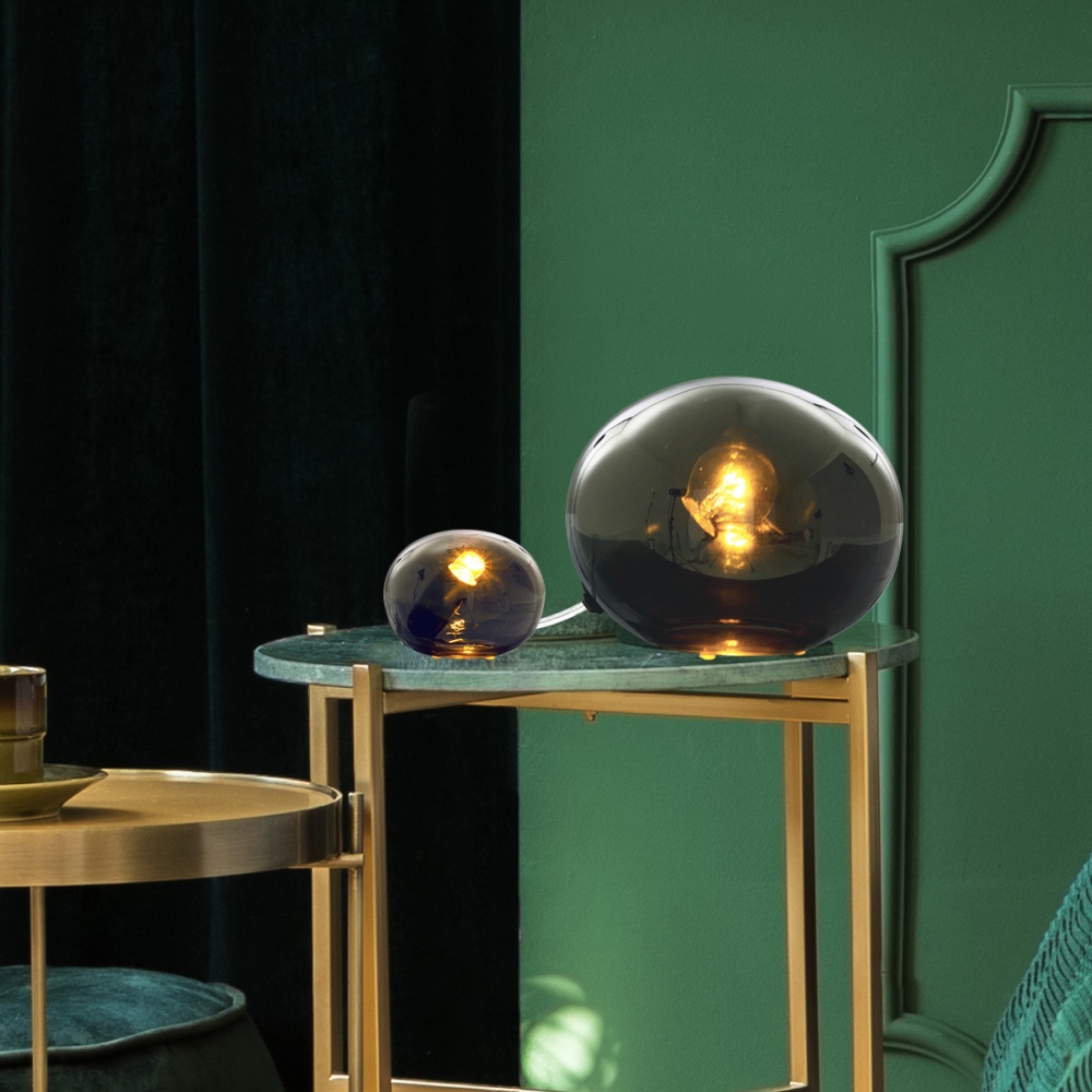 Bordslampa Globus från varumärket Aneta Lighting har en stilren design i rökfärgat glas med en inbyggd ljuskälla som sprider ett mjukt och behagligt sken. Den runda formen och det dämpade ljuset gör den till ett dekorativt inslag i rummet. Höjden är 10 cm och bredd och djup är 13 cm. Till Globus rekommenderas en päronlampa med en E14 sockel, max 25W. Den levereras med en sladd med mellanströmbrytare och stickpropp. Ljuskälla ingår ej.