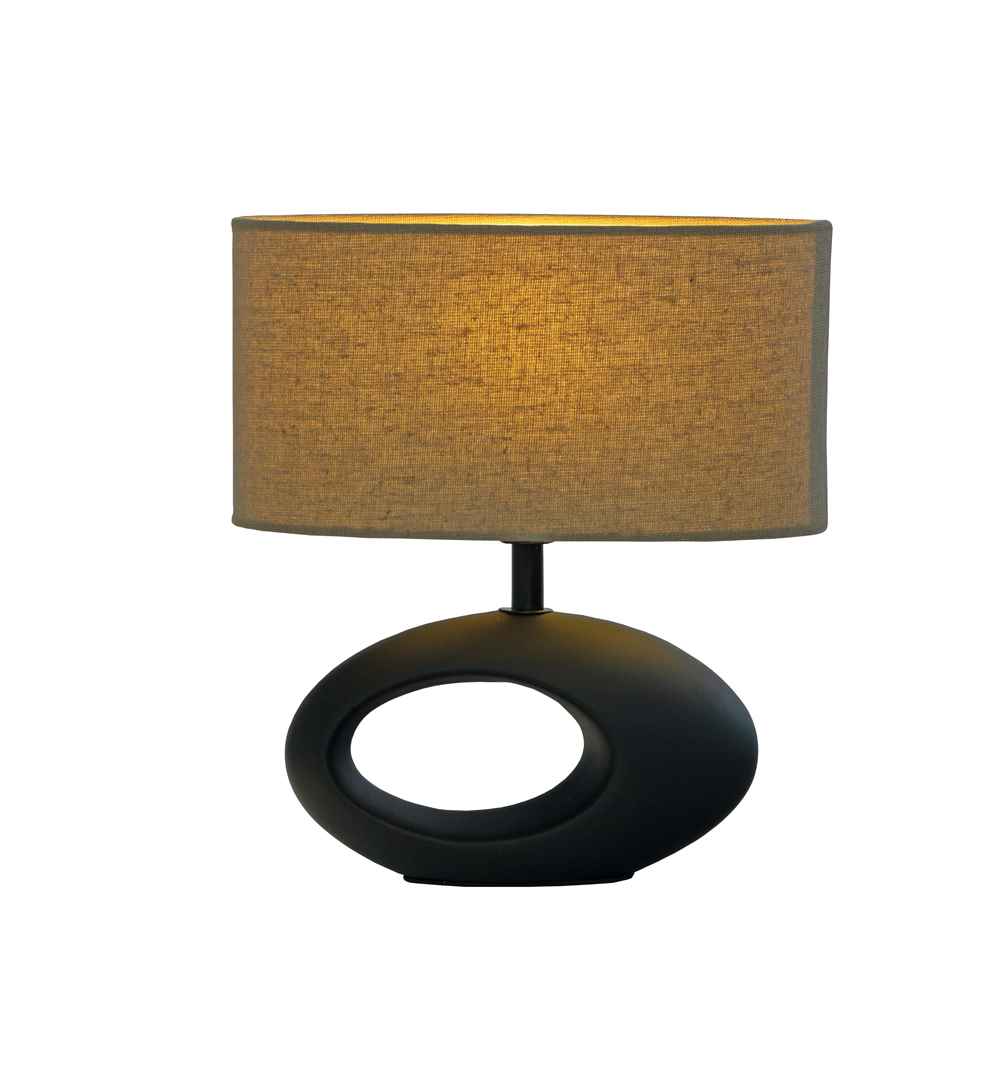 Bordslampa Olina från Aneta Lighting har en modern och stilren design med en svart keramikfot och en oval brun textilskärm. Den lättplacerade bordslampan passar utmärkt på sängbordet, skrivbordet eller i fönstret och skapar en varm och inbjudande atmosfär i rummet. Rekommenderad ljuskälla: E14, max 40W. Ljuskälla ingår ej.