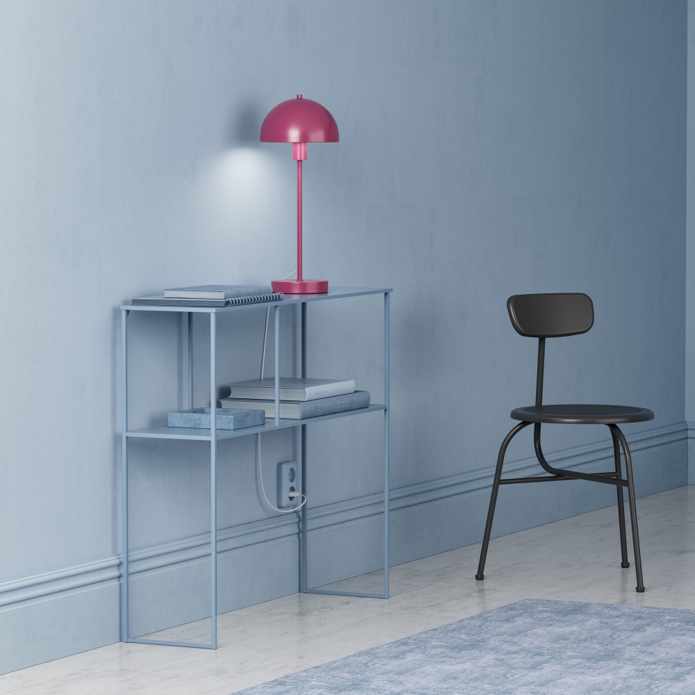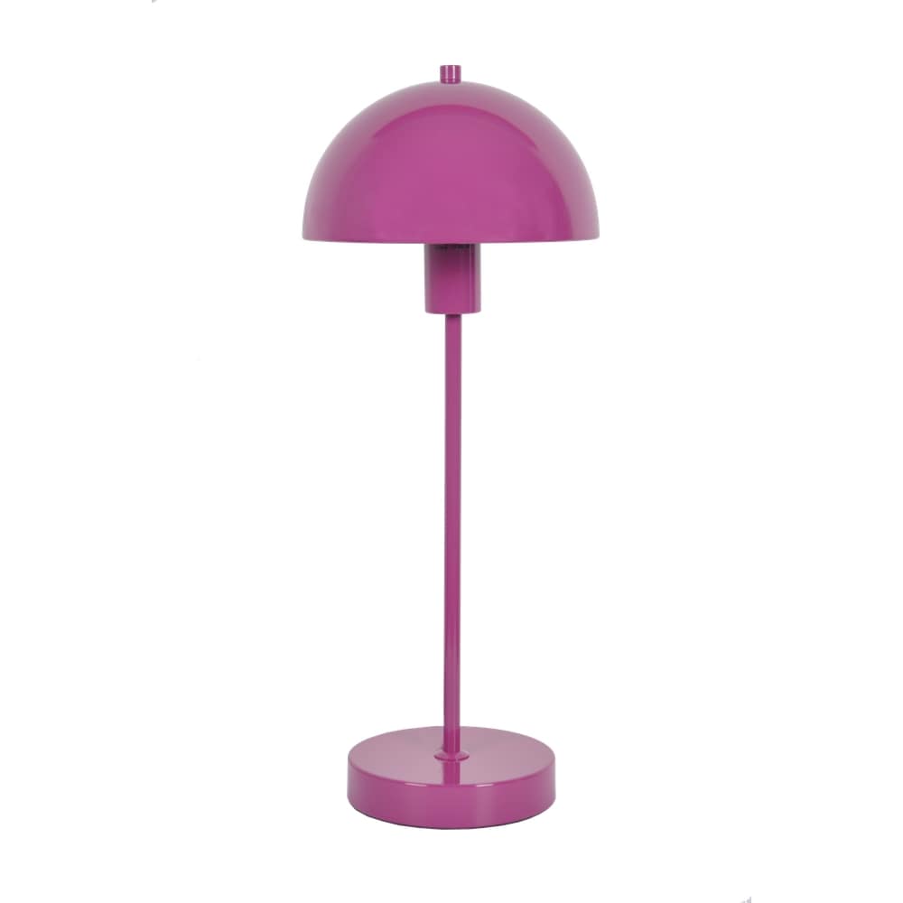 Bordslampa Vienda från Herstal i lila metall med elegant glaskupa. Lampan har en tidlös och stilren design med en mjukt kupolformad skärm som sprider ett behagligt ljus i rummet. Tack vare sin nätta form är den enkel att placera och är lika fin på ett sidobord i vardagsrummet som på nattduksbordet bredvid sängen.
