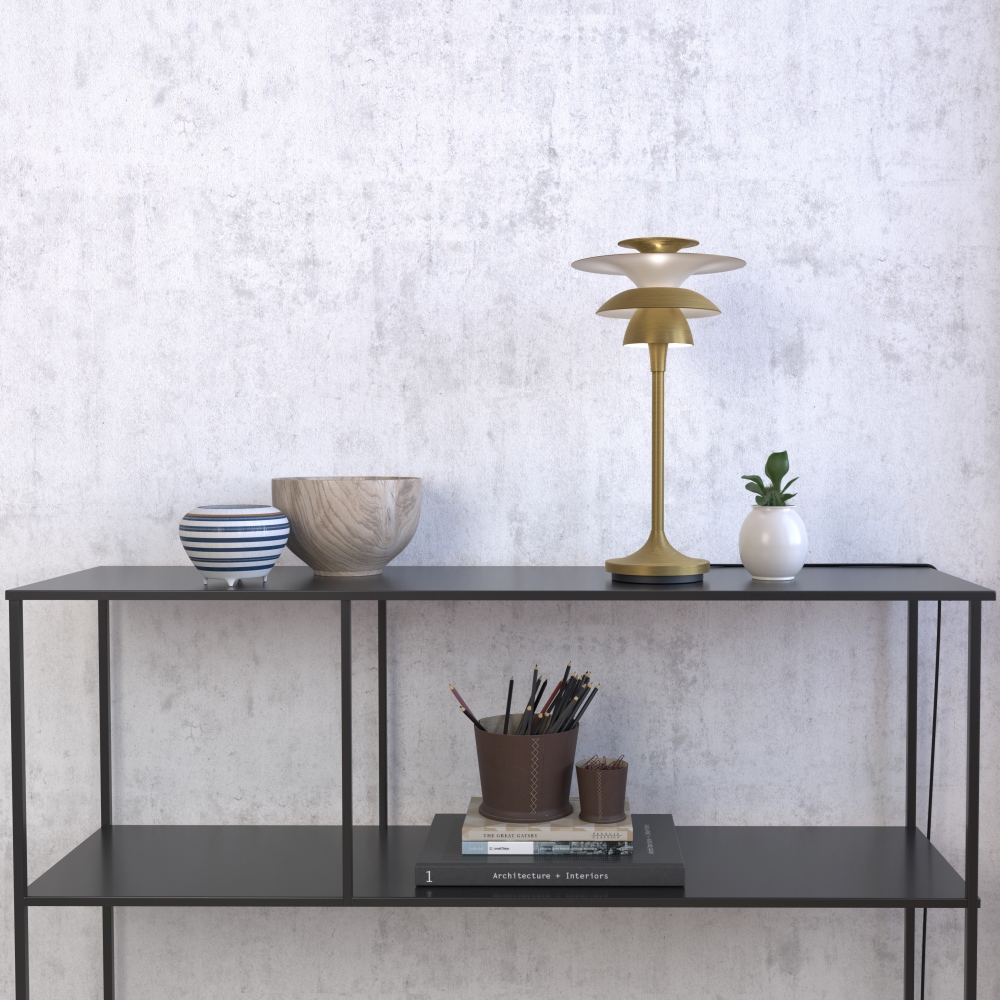 Bordslampa Picasso från Belid har en elegant och tidlös design, tillverkad i borstad mässingsfärgad metall. Den har flera skärmar som sprider ett jämt och mjukt ljus runt om, vilket skapar en behaglig och stämningsfull atmosfär. Perfekt för vardagsrum, sovrum eller mysbelysning i hemmets alla rum.