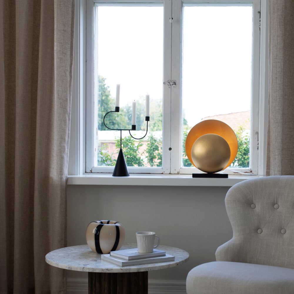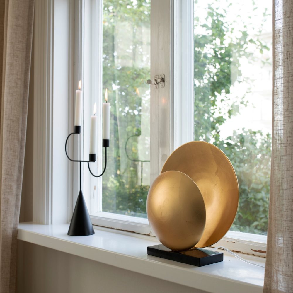 Bordslampa Orbit från Globen Lighting är inspirerad av seklets början då indirekt ljus var populärt, en trend som nu åter är högaktuell. Bordslampan är tillverkad i metall med en belagd yta som påminner om bladmässing, har Orbit en dold ljuskälla som sprider ett mjukt och behagligt indirekt ljus. Den eleganta svarta marmorfoten ger designen ett lyxigt och sofistikerat uttryck, perfekt som stämningsbelysning i moderna hem. Ljuskälla ingår ej.