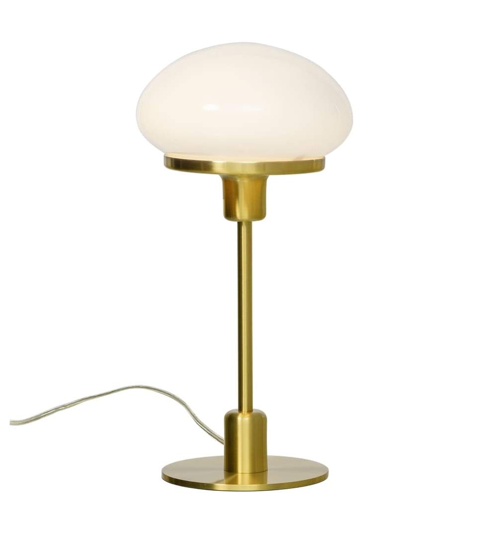 Bordslampa New August från Aneta Lighting har en tidlös design med modern touch. Den blanka glaskupan sprider ett mjukt och stämningsfullt ljus som är perfekt för fönsterbrädan, sidobordet eller nattduksbordet. Bordslampan har en matt mässingsfärgad metallfot och en blank vit glaskupa som ger rummet en stilren känsla. Till New August rekommenderas en ljuskälla med en E14 sockel, max 40W. Ljuskälla ingår ej.