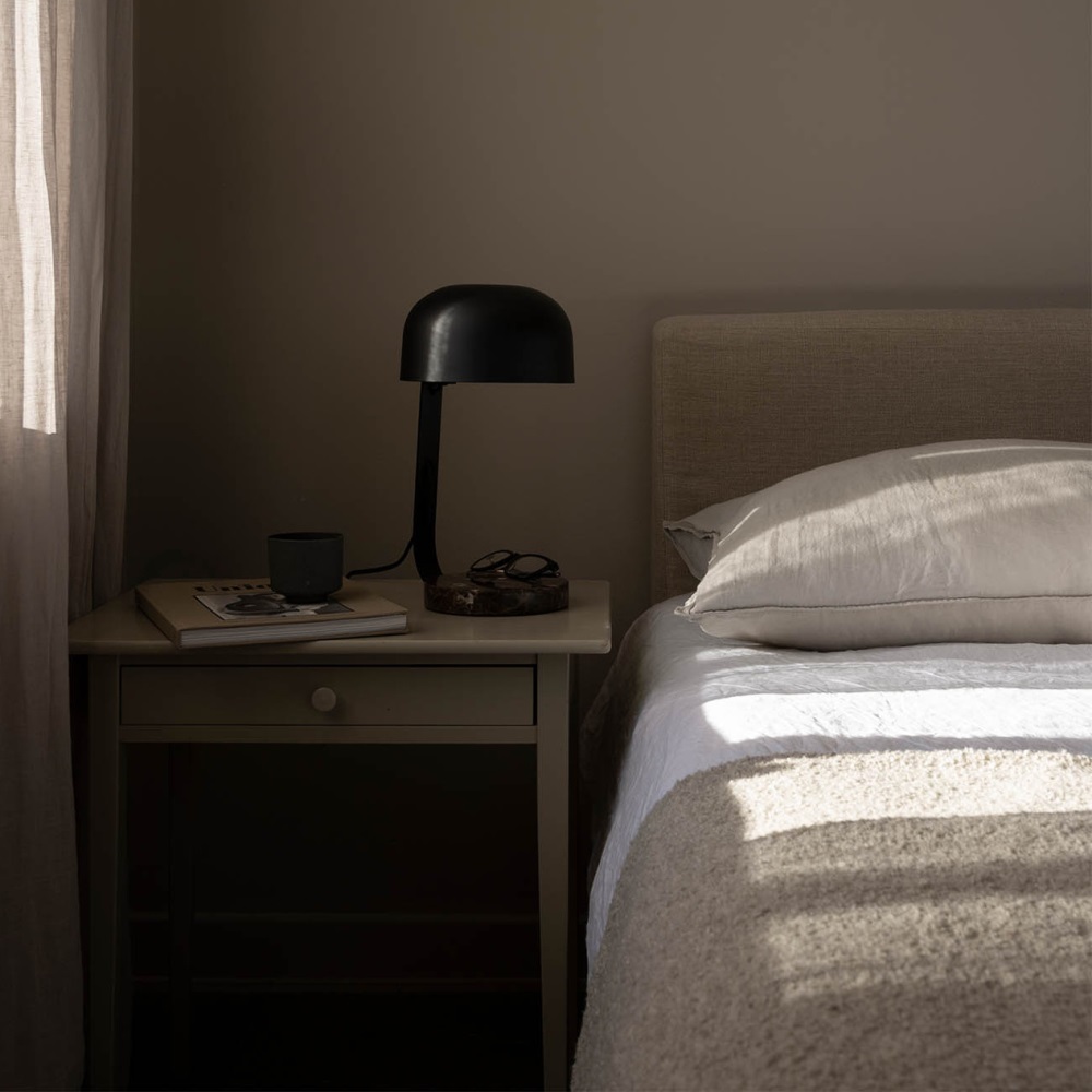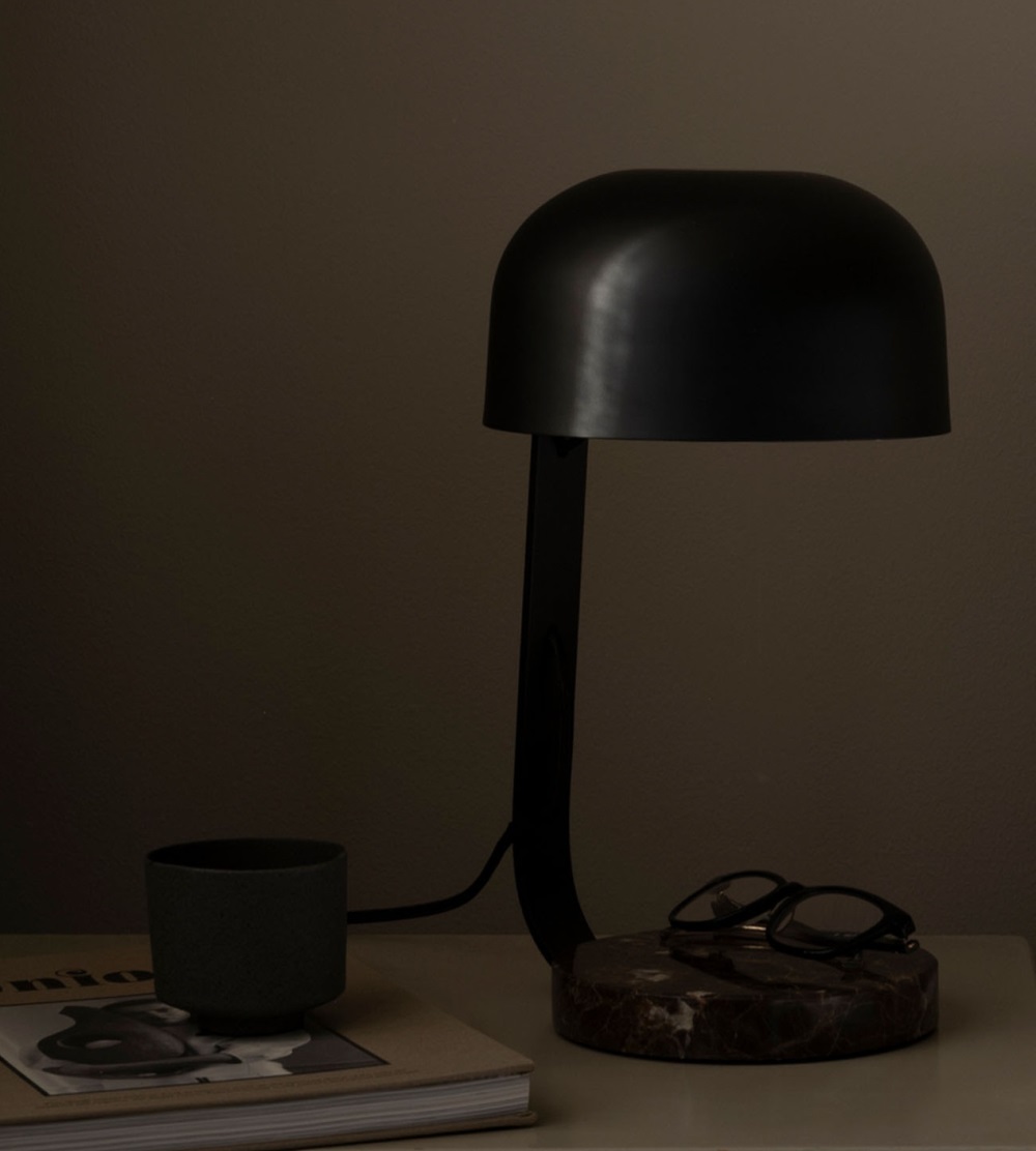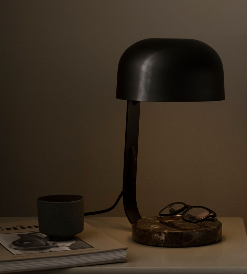Bordslampa Milly från Watt & Veke har en stilren och grafisk design som enkelt passar i olika rum, i fönstret, på sidobordet eller sängbordet. Den massiva marmorfoten och skärmen i svartlackad metall gör bordslampan både elegant och tidlös, och passar lika bra i moderna som klassiska hem.