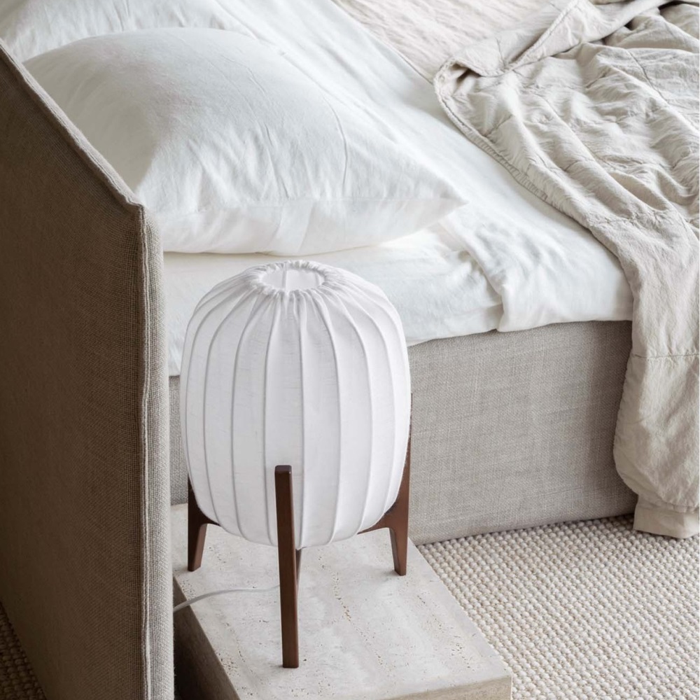 Bordslampa Prisma från Watt & Veke har en tidlös design som skapar en känsla av avslappnad lyx. Den eleganta lampfoten i mörkt, lackat trä i kombination med den mjuka, vita linneskärmen blir en fantastiskt mysig inredningsdetalj och en elegant ljuspunkt.