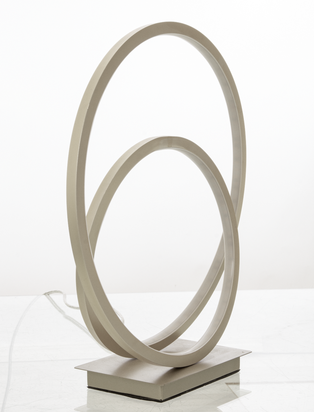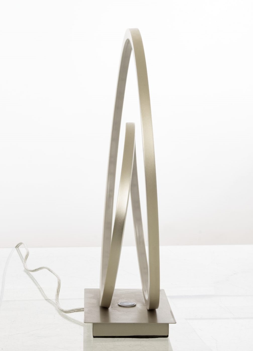 Bordslampa Loop från varumärket Aneta Lighting har en spännande och modern design i stålfärgad metall. Den integrerade LED-ljuskällan på 14W avger ett varmt vitt ljus med bra färgåtergivning och är perfekt för en fin stämningsbelysning. Med 3-stegs dimmer på lampfoten justerar du enkelt ljusstyrkan. Lampan ansluts med plug-in kontakt och blir ett stilfullt inslag i rummet. Ljuskälla ingår.