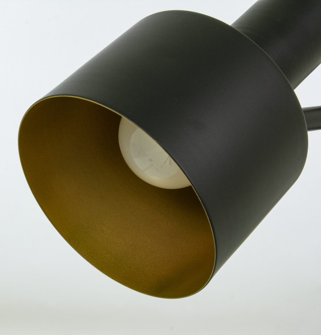 Bordslampa Ferdinand från varumärket Aneta Lighting har en retroinspirerad design i svartlackerad metall med guldig insida som ger ett varmt ljus. Den tänds och släcks med strömbrytaren som är placerad uppe på lamphuvudet. Till lampan rekommenderas en ljuskälla med en E27 sockel, maxeffekt på 11W. Ljuskälla ingår ej.