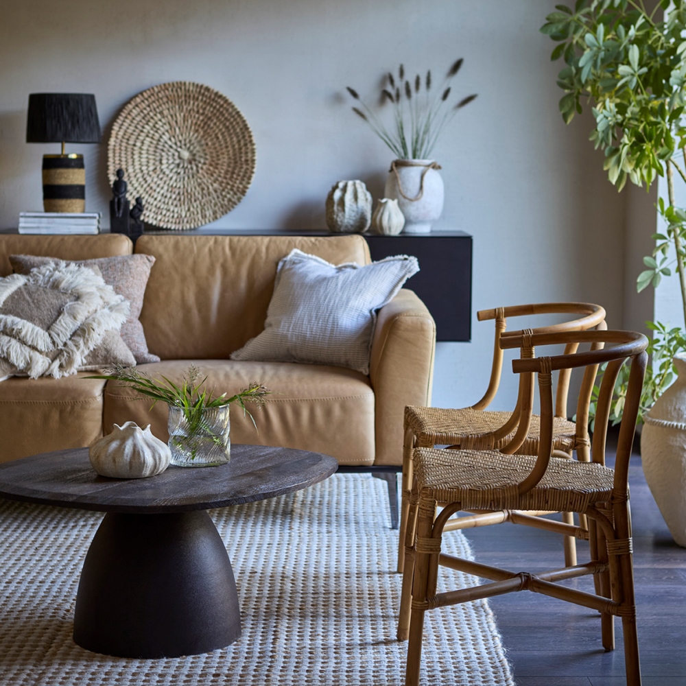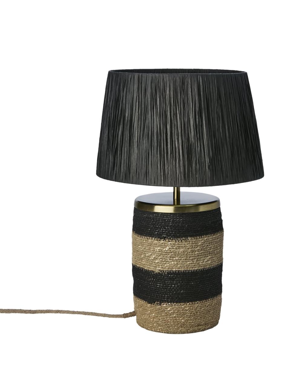 Bordslampa Lando från Affari of Sweden har en modern design med naturnära material. Den är tillverkad av moonjgräs och raffiagräs kombinerat med lackerat järn, som skapar en varm och naturnära känsla som passar i alla hem. Den svarta lampskärmen ger ett mjukt, nedåtriktat ljus som skapar en behaglig atmosfär. Perfekt på ett sidobord eller som dekorativ detalj i hemmet. Höjd: 47 cm. Diameter: 15/30 cm. Den levereras med en 2,1 meter sladd med EU stickkontakt. Till Lando rekommenderas en ljuskälla med en E27 sockel, max 25W. Ljuskälla ingår ej.