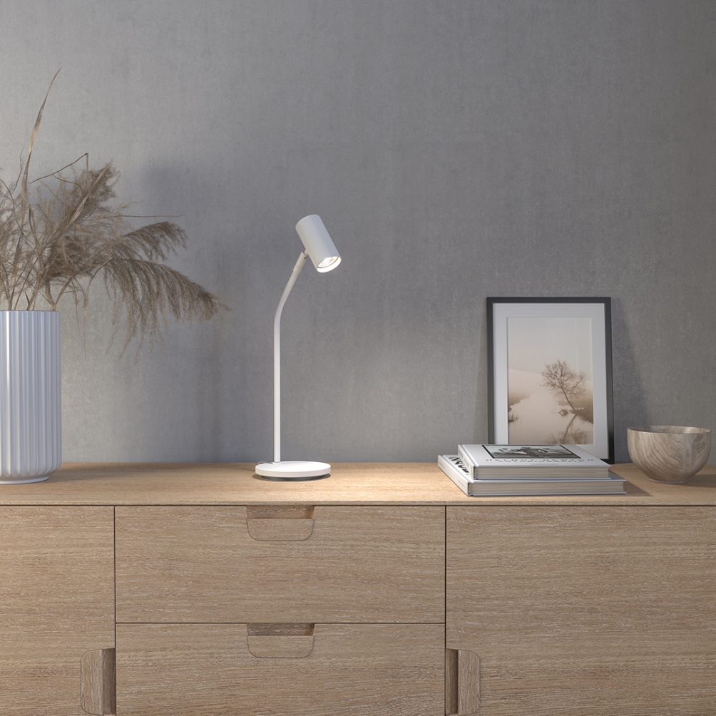 Bordslampa Tyson från Belid har en stilren design i vit metall med en justerbar lampskärm som gör det enkelt att rikta ljuset dit det behövs och är idealisk för läsning, studier eller arbete. Den praktiska on/off-knappen sitter på lamphuvudet för smidig användning.