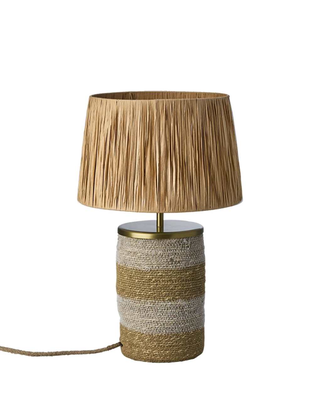 Bordslampa Lando från Affari of Sweden har en modern design med naturnära material. Den är tillverkad av moonjgräs och raffiagräs kombinerat med lackerat järn, som skapar en varm och naturnära känsla som passar i alla hem. Den ljusa lampskärmen ger ett mjukt, nedåtriktat ljus som skapar en behaglig atmosfär. Perfekt på ett sidobord eller som dekorativ detalj i hemmet. Höjd: 47 cm. Diameter: 15/30 cm. Den levereras med en 2,1 meter sladd med EU stickkontakt. Till Lando rekommenderas en ljuskälla med en E27 sockel, max 25W. Ljuskälla ingår ej.