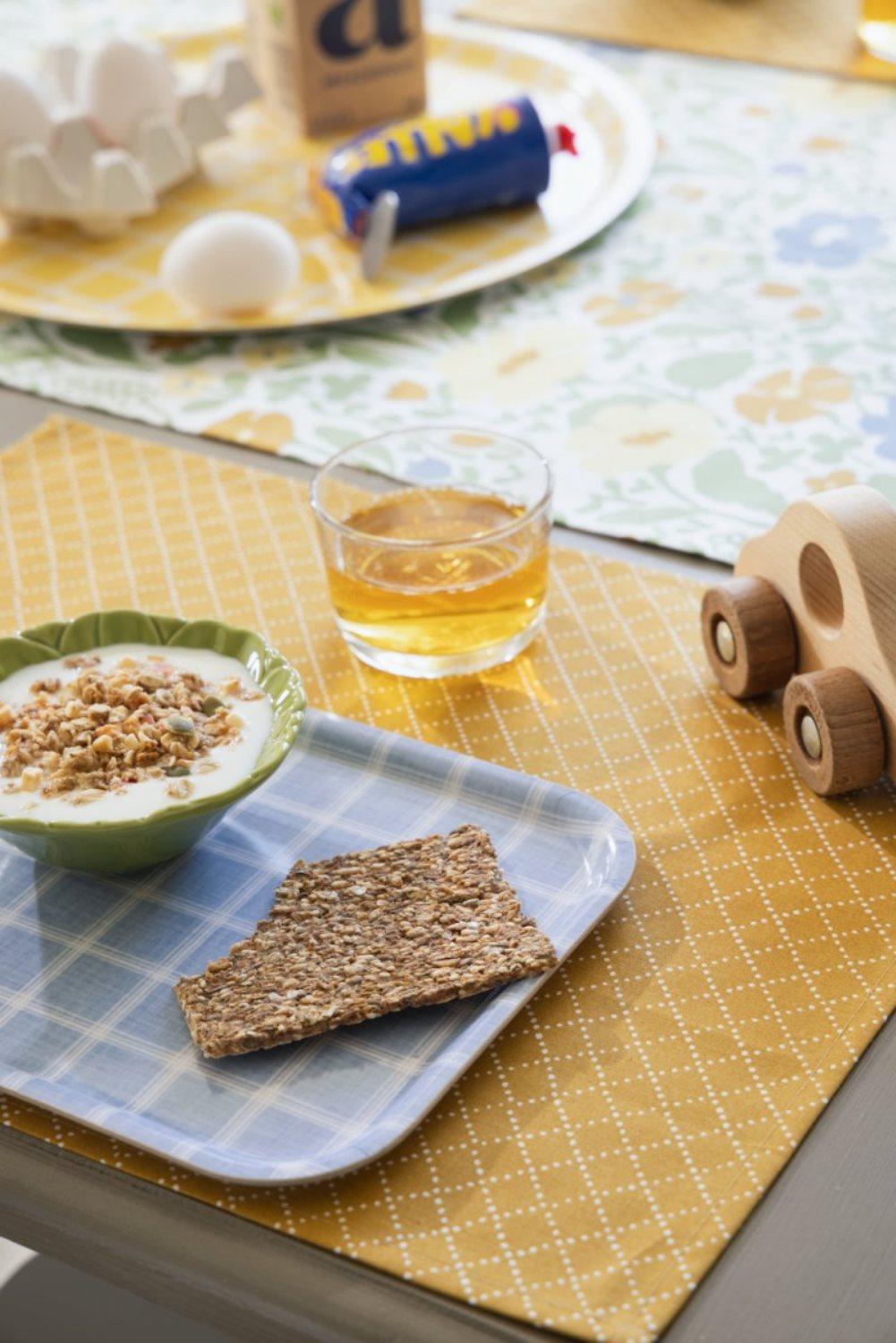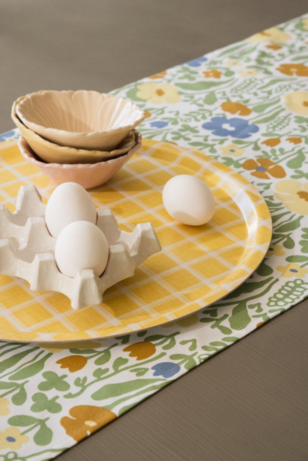 Bordslöpare Fauna från Almedahls är tillverkad i 100% bomull och har ett retroinspirerat blommönster i grönt och gult som ger bordet ett livfullt uttryck. Mönstret formgavs av Anna-Lena Emdén under 1970-talet och hette ursprungligen Ängland. Den tidlösa designen passar i många olika inredningsstilar.