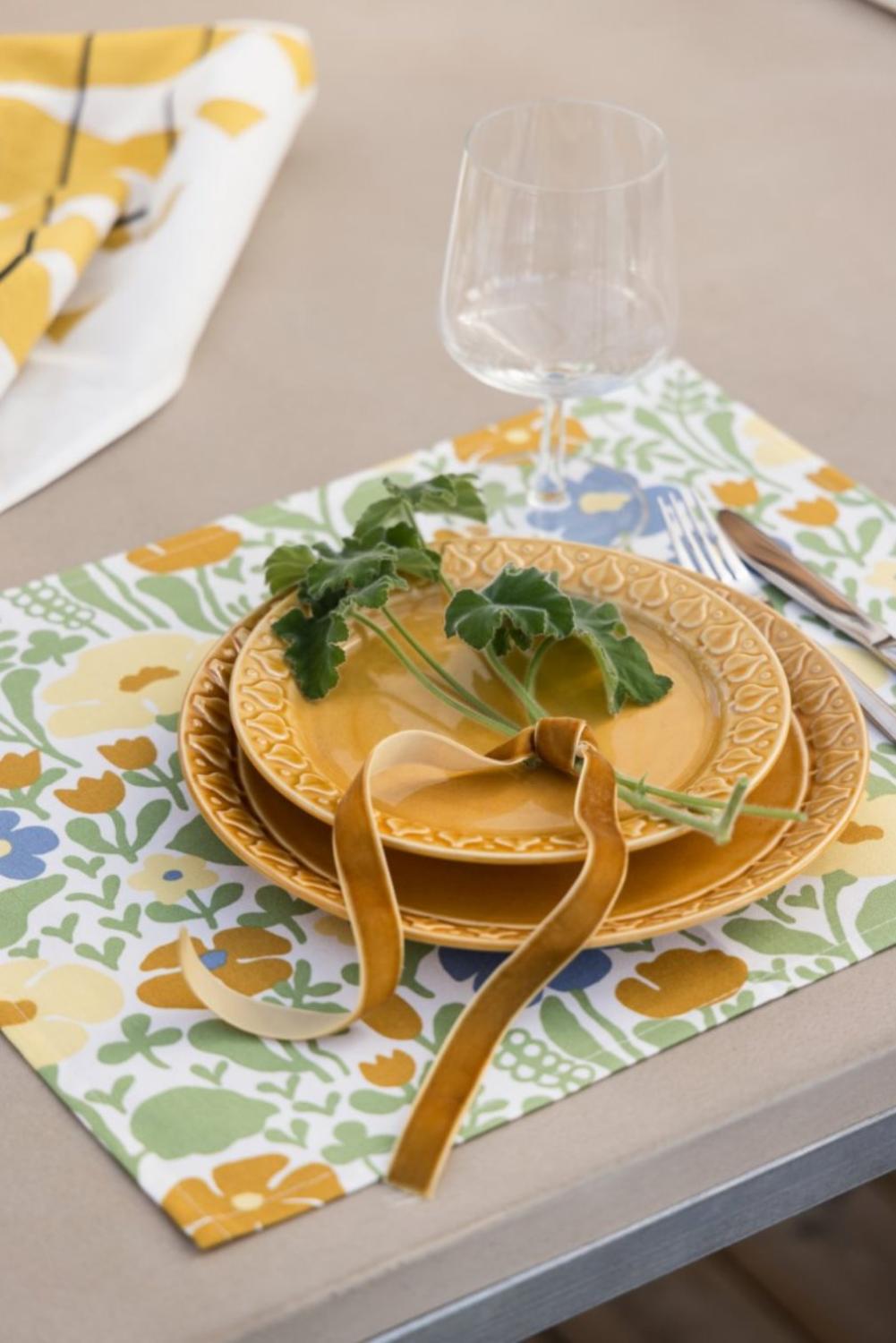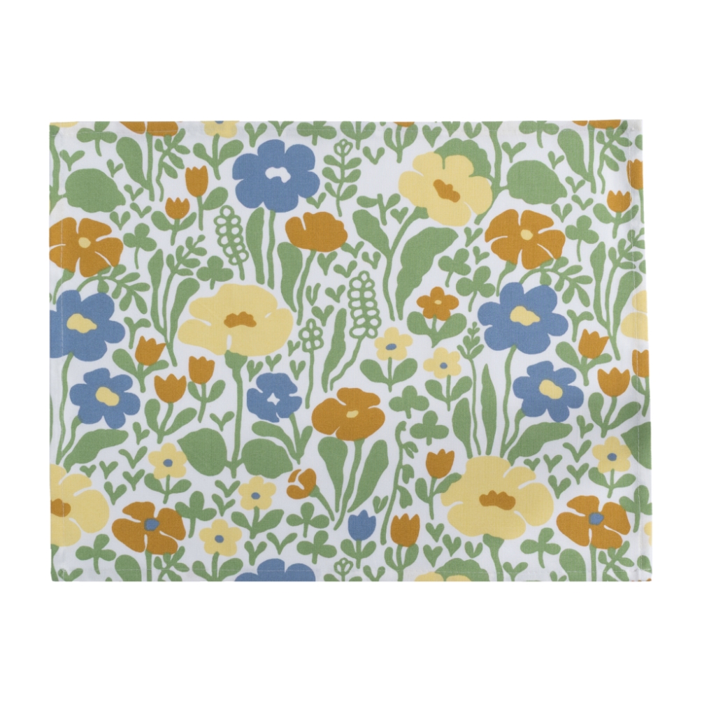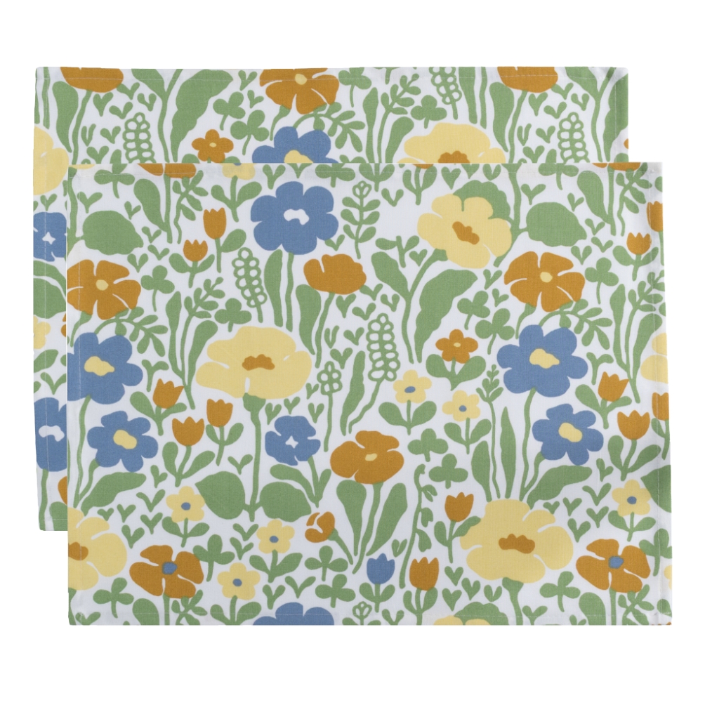 Bordstablett Fauna 2-pack från Almedahls i en vacker gulgrön nyans med skandinavisk design. Det retroinspirerade mönstret från 1970-talet med stiliserade blommor ger ett livfullt och lekfullt uttryck. Mönstret formgavs av Anna-Lena Emdén och hette ursprungligen Ängland. Tillverkade i 100% bomull, vilket gör dem både slitstarka och lättskötta och är perfekta för daglig användning. Storlek: 34x45 cm. Säljes i 2-pack.
