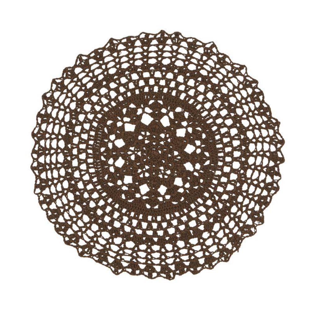 Bordstablett Britta från Fondaco i en vacker nougatfärgad nyans är en rund, handvirkad bordstablett med ett vackert virkmönster och detaljerade maskor som skapar en känsla av hantverk, tradition och tidlös elegans. Diameter: 38 cm. Pris per styck: 64 kr/st. Säljes i 6-pack.