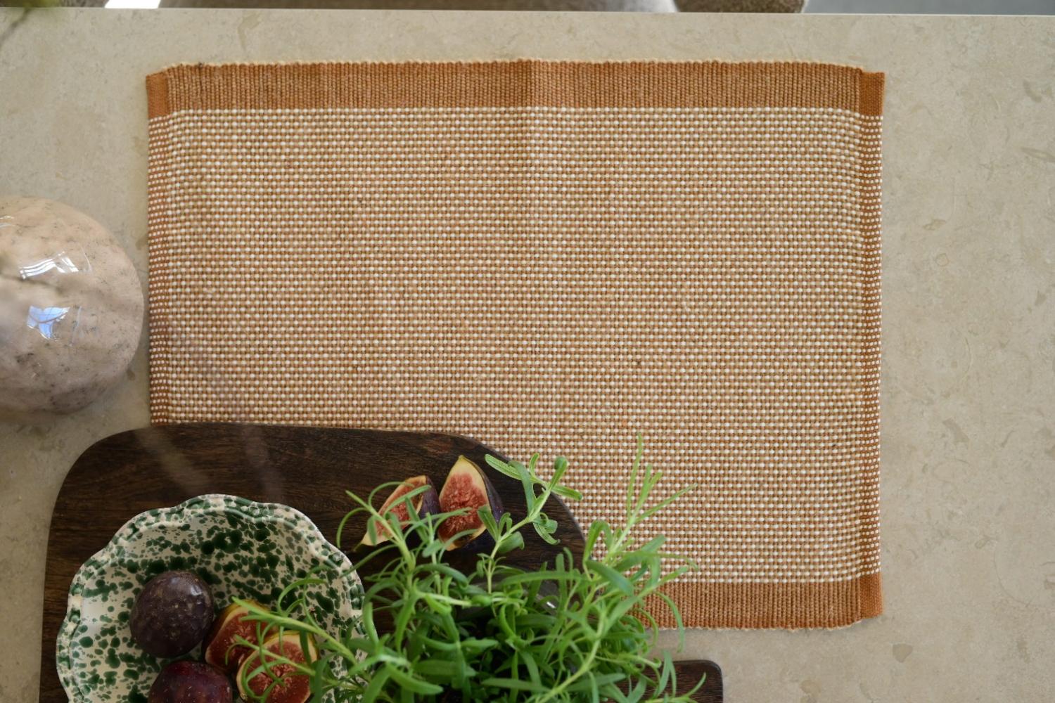 Bordstablett Tore från Fondaco i en varm konjakston med rustik och charmig design. Den grova strukturen från jute kombineras med bomullens mjukhet för en naturlig känsla. En stilfull detalj som ger dukningen både karaktär och värme. Storlek: 35x45 cm. Säljes i 6-pack.