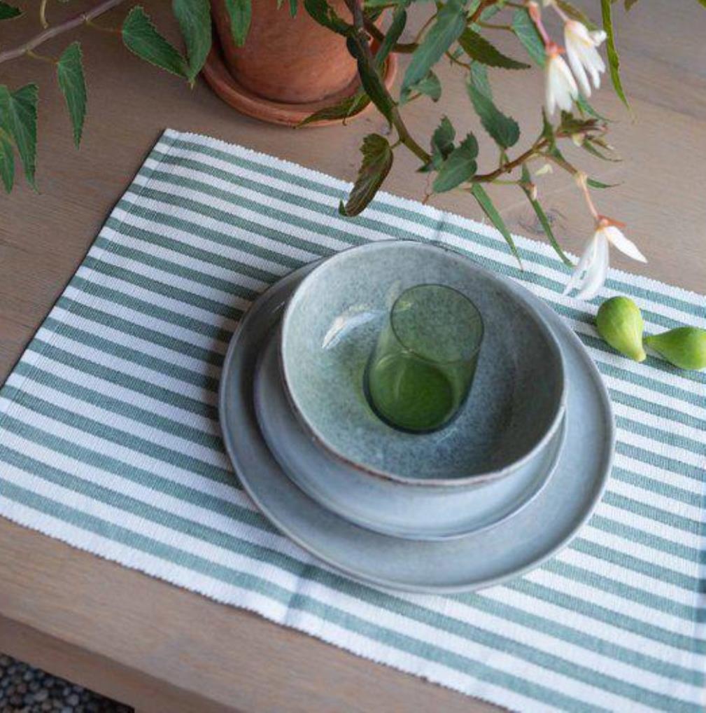 Bordstablett Nina från Fondaco i garnfärgat bomullstyg med trendiga äpplegröna ränder. Den karakteristiska ripstrukturen ger den en gedigen känsla och vacker textur som ger liv åt bordet. Bordstabletten passar lika bra till den enkla vardagsfrukosten som till den eleganta festmiddagen. Storlek: 35x45 cm. Pris per styck: 40 kr/st. Säljes i 6-pack.