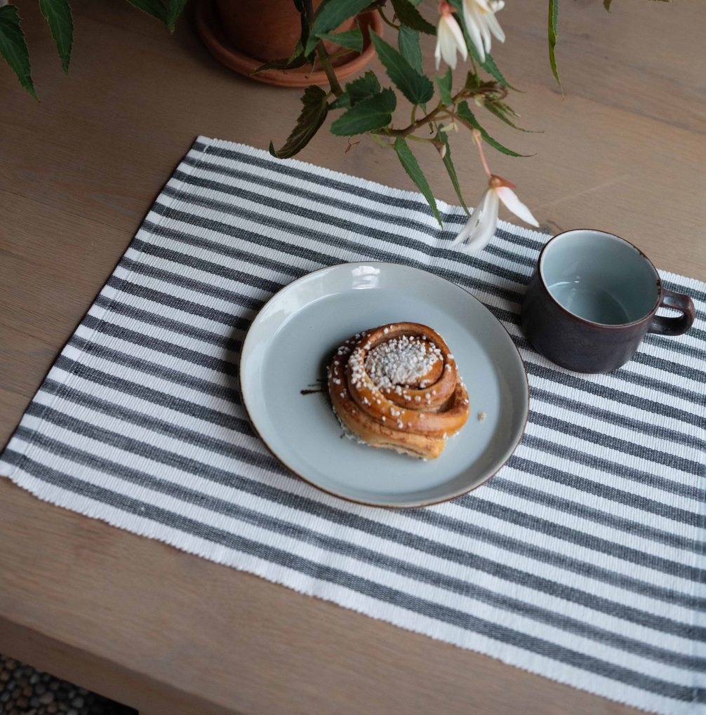 Bordstablett Nina från Fondaco i garnfärgat bomullstyg med trendiga svarta ränder. Den karakteristiska ripstrukturen ger den en gedigen känsla och vacker textur som ger liv åt bordet. Bordstabletten passar lika bra till den enkla vardagsfrukosten som till den eleganta festmiddagen. Storlek: 35x45 cm. Pris per styck: 40 kr/st. Säljes i 6-pack.