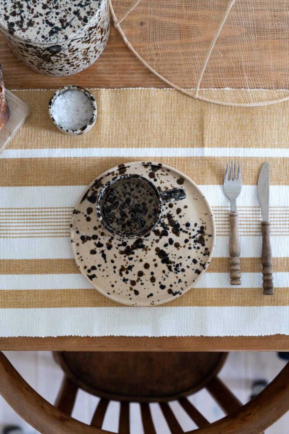 Bordstablett Petter från Fondaco i havregul ripsvävd bomull med en tidlös design. De oregelbundna ränderna skapar ett klassiskt uttryck medan den karakteristiska ripstrukturen ger en vacker textur och tydlig vävkaraktär. Bordstabletten är perfekt för både vardagsdukningar och festliga tillfällen. Storlek: 35x45cm. Pris per styck: 40 kr/st. Säljes i 6-pack.