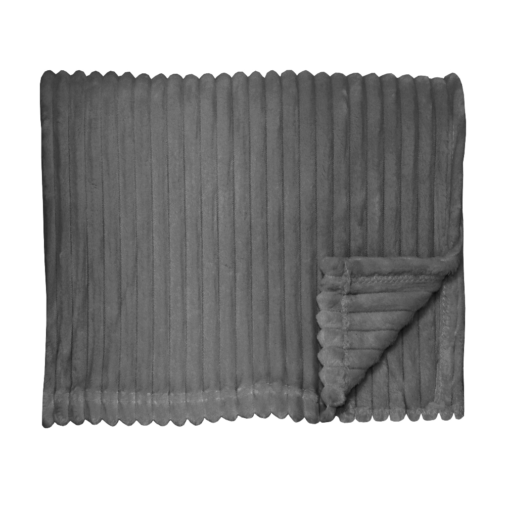 Fleecepläd Baloo mörkgrå från Nina Royal är en mysig enfärgad pläd i mjuk, bredspårig manchesterlook, tillverkad i 100 % polyester. Den ger både värme och stil åt ditt hem och är perfekt att svepa om sig i soffan eller lägga över sängen för extra komfort och en elegant känsla. Storlek: 130x170 cm.