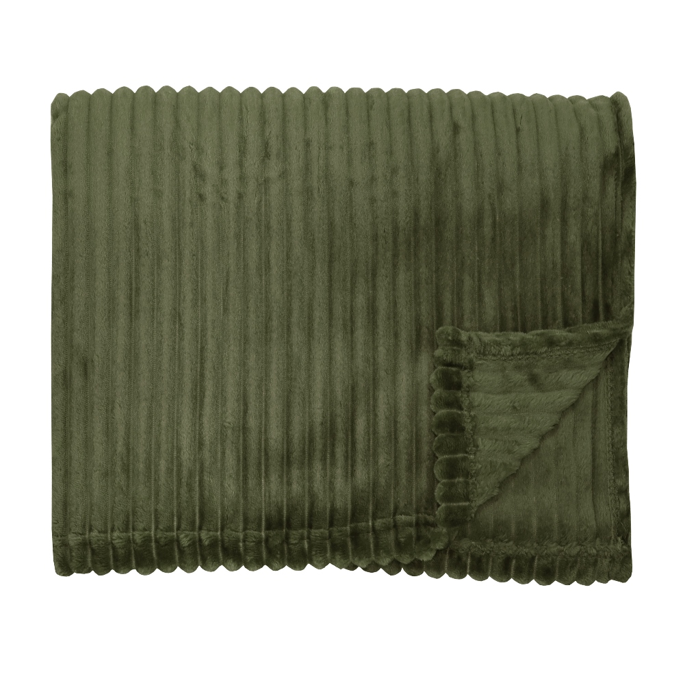 Fleecepläd Baloo olivgrön från Nina Royal är en mysig enfärgad pläd i mjuk, bredspårig manchesterlook, tillverkad i 100 % polyester. Den ger både värme och stil åt ditt hem och är perfekt att svepa om sig i soffan eller lägga över sängen för extra komfort och en elegant känsla. Storlek: 130x170 cm.