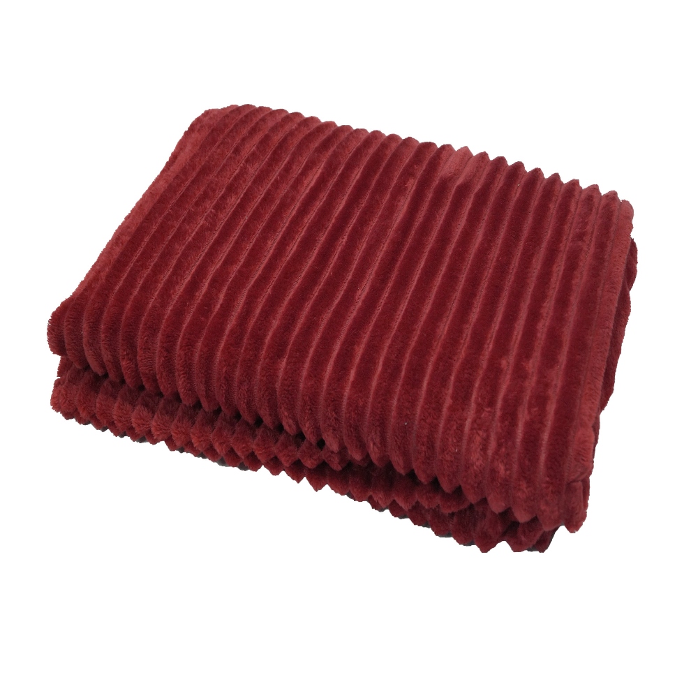 Fleecepläd Baloo vinröd från Nina Royal är en mysig enfärgad pläd i mjuk, bredspårig manchesterlook, tillverkad i 100% polyester. Den ger både värme och stil åt ditt hem och är perfekt att svepa om sig i soffan eller lägga över sängen för extra komfort och en elegant känsla. Storlek: 130x170 cm.