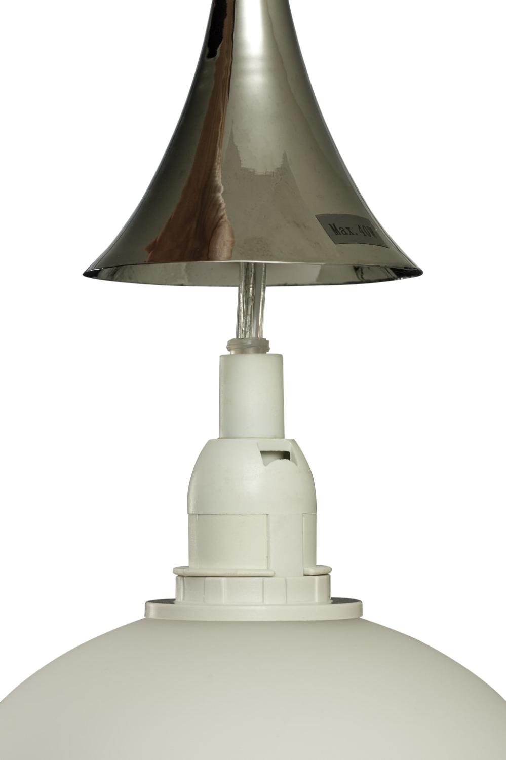Globus är en stilren fönsterlampa från Aneta Lighting med vit opalglaskupa och kromfärgade detaljer. Tack vare sin nätta design passar den utmärkt som fönsterbelysning, men gör sig lika fint i hallen eller sovrummet. Den opalvita glaskupan sprider ett mjukt och behagligt ljus, som skapar en lugn och inbjudande atmosfär. Den levereras med en 4 meter sladd med mellanströmbrytare och stickpropp. Till Globus rekommenderas en ljuskälla med en E14 sockel, max 40W. Ljuskälla ingår ej.