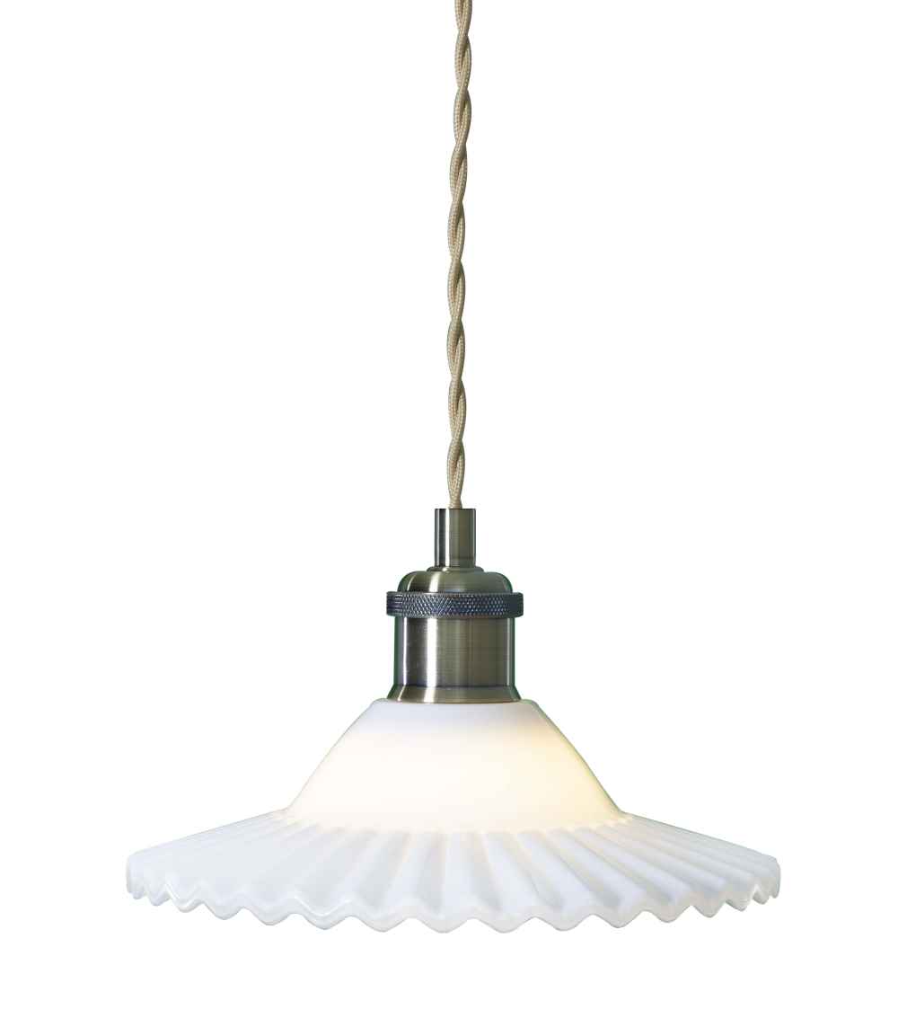 Fönsterlampa Silvia från Aneta Lighting har en elegant skärm i vitt glas med vacker böljande volang i nederkant och lamphållare i antikfärgad metall. Den romantiska vintagestilen gör fönsterlampan till en charmig inredningsdetalj som passar i både klassiska, lantliga och moderna hem. Den tvinnade textilsladden ger ett extra stilfullt uttryck och förstärker den härliga vintagekänslan.