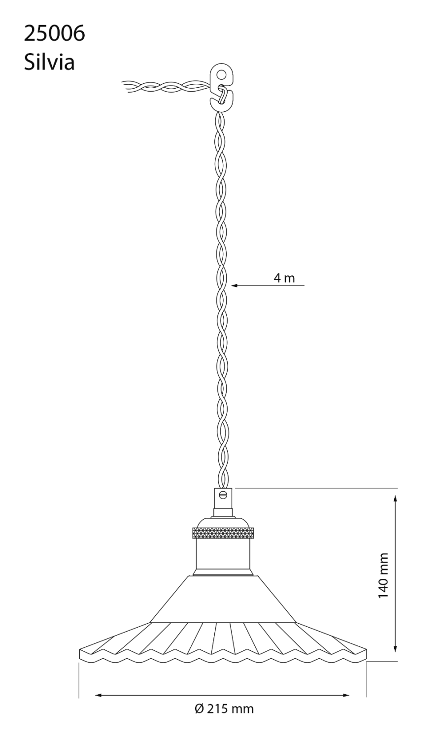 Fönsterlampan levereras med en 4 meter beige textilsladd med strömbrytare på sladden. Rekommenderad ljuskälla: E27, max 40W. Ljuskälla ingår ej.