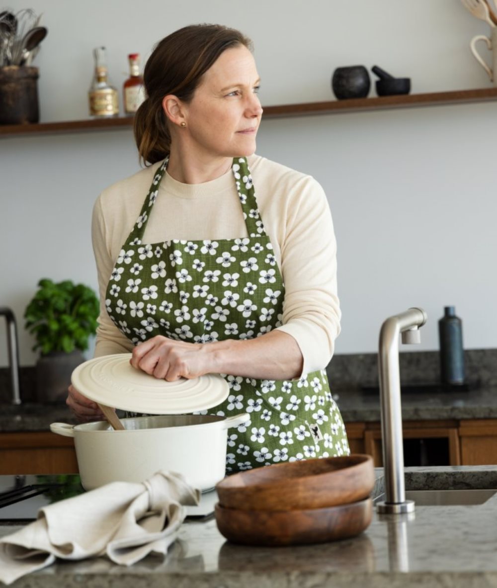 Mönstret Belle Amie är skapat av Marianne Westman, en av Sveriges mest uppskattade formgivare inom porslin och textil. Hennes design präglas av rena linjer och inspiration från naturen, med rötter i 1950- och 60-talets svenska formtradition. Den passar perfekt för dig som vill ha en funktionell kökstextil med stilfullt och genomtänkt uttryck.
